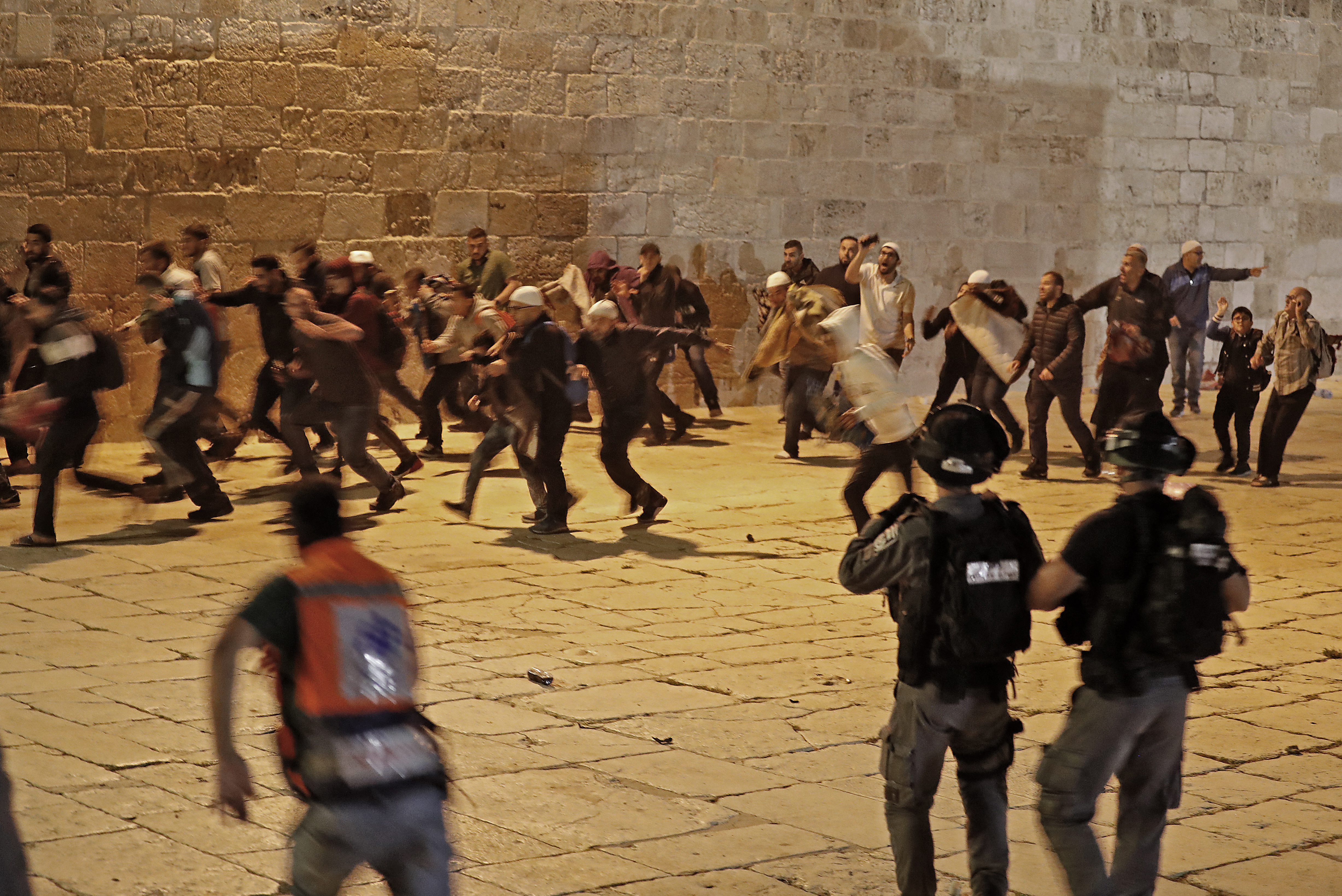 Hours after clashes first broke out, large reinforcements from the Israeli police forces continued to stream into the Al-Aqsa Mosque compound.