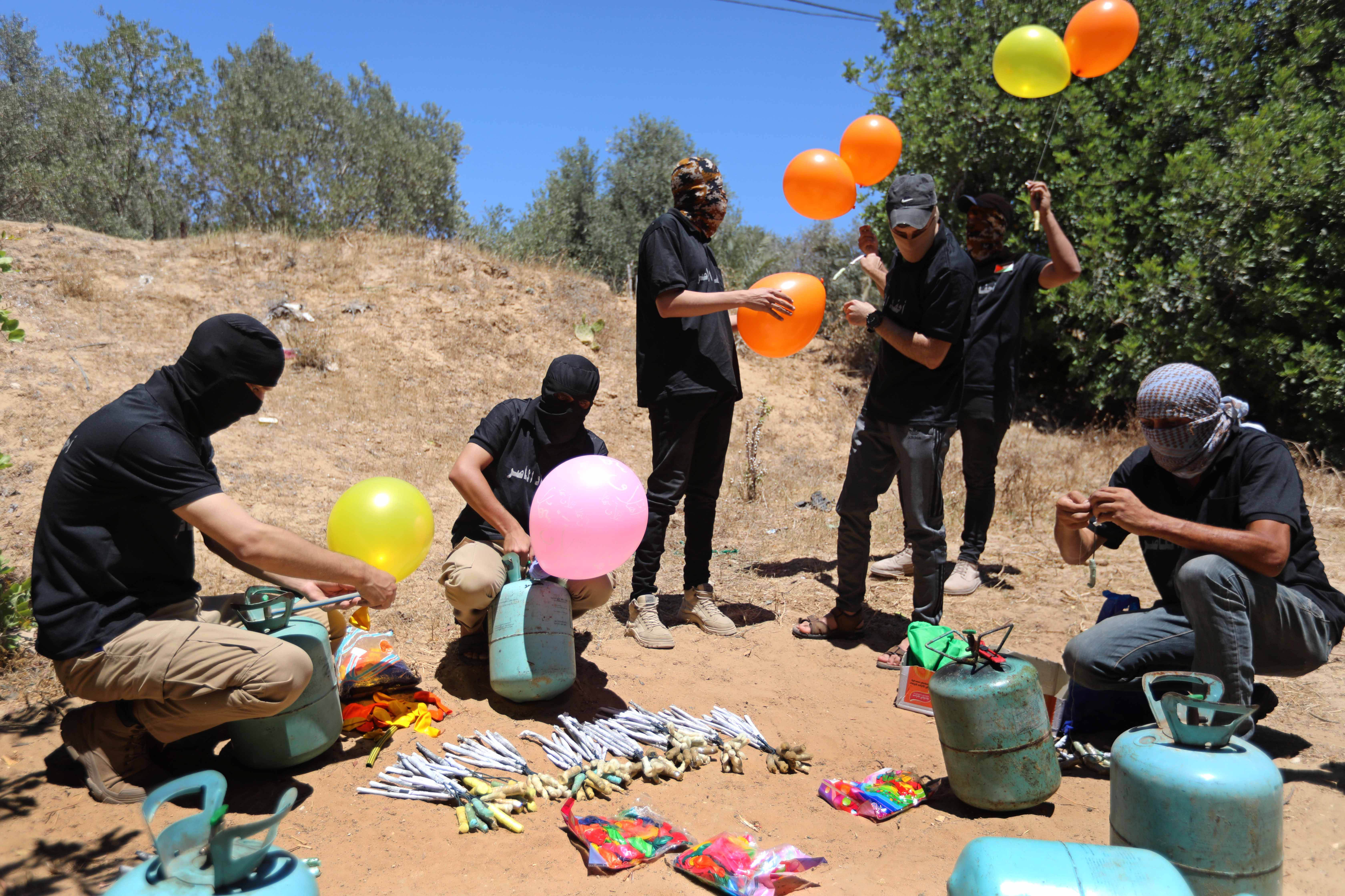 The Israeli fire brigade said the balloons caused at least 20 blazes in fields in the Israeli towns surrounding the Gaza Strip.