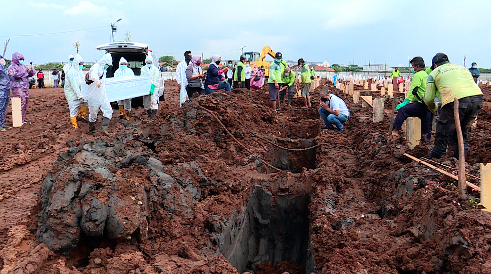 In the Indonesian capital, the designated COVID-19 burial sites, such as Pondok Rangon Cemetery, that were opened in the early months of the pandemic are already full.