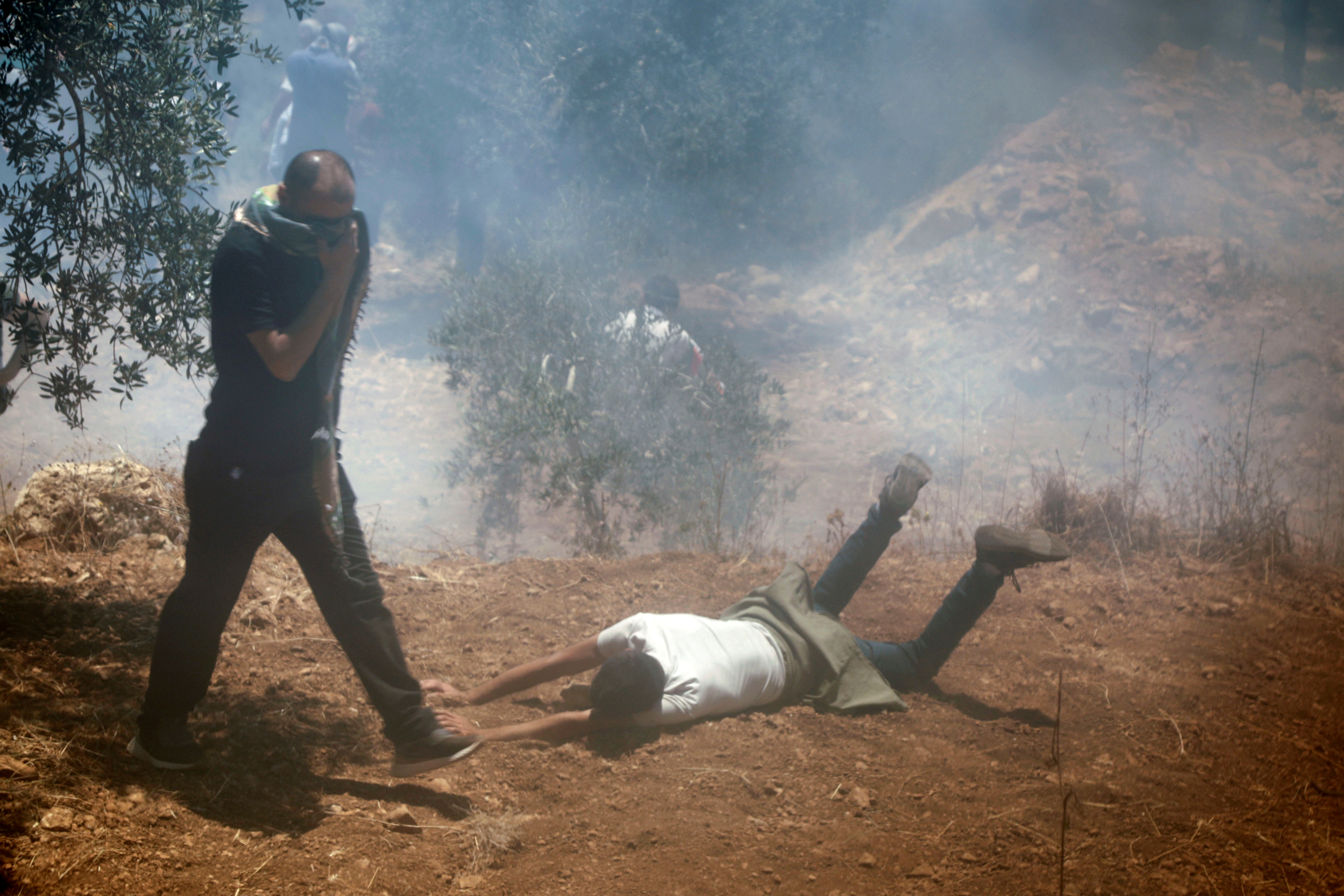 Israeli drones armed with tear gas canisters flew overhead periodically before hovering above the young men and dispensing their loads.