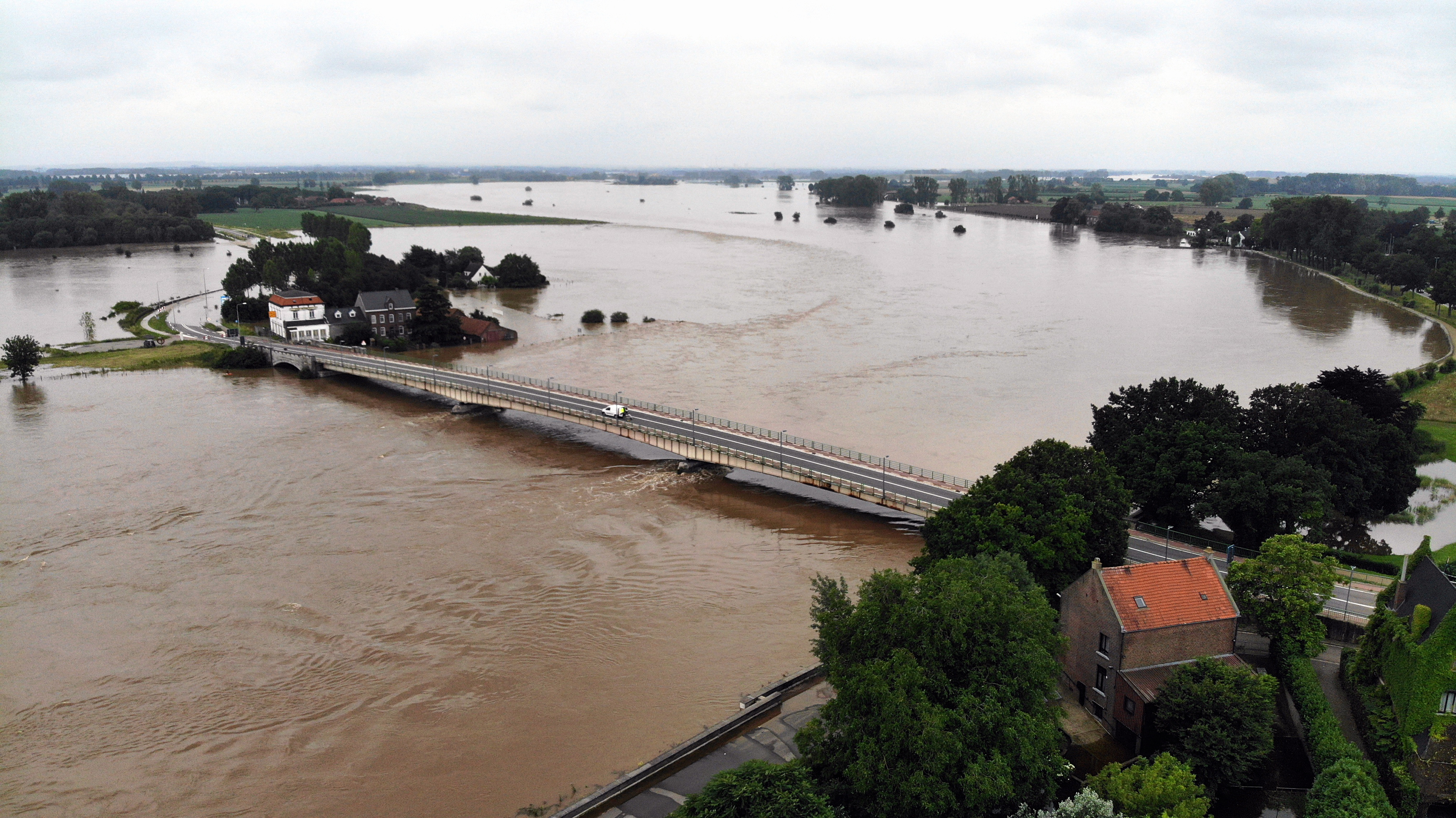 Emergency services said the flood waters were about to swamp the surrounding villages of Bunde, Voulwames, Brommelen and Geulle. Sirens sounded and drone footage showed water flowing into streets and homes.