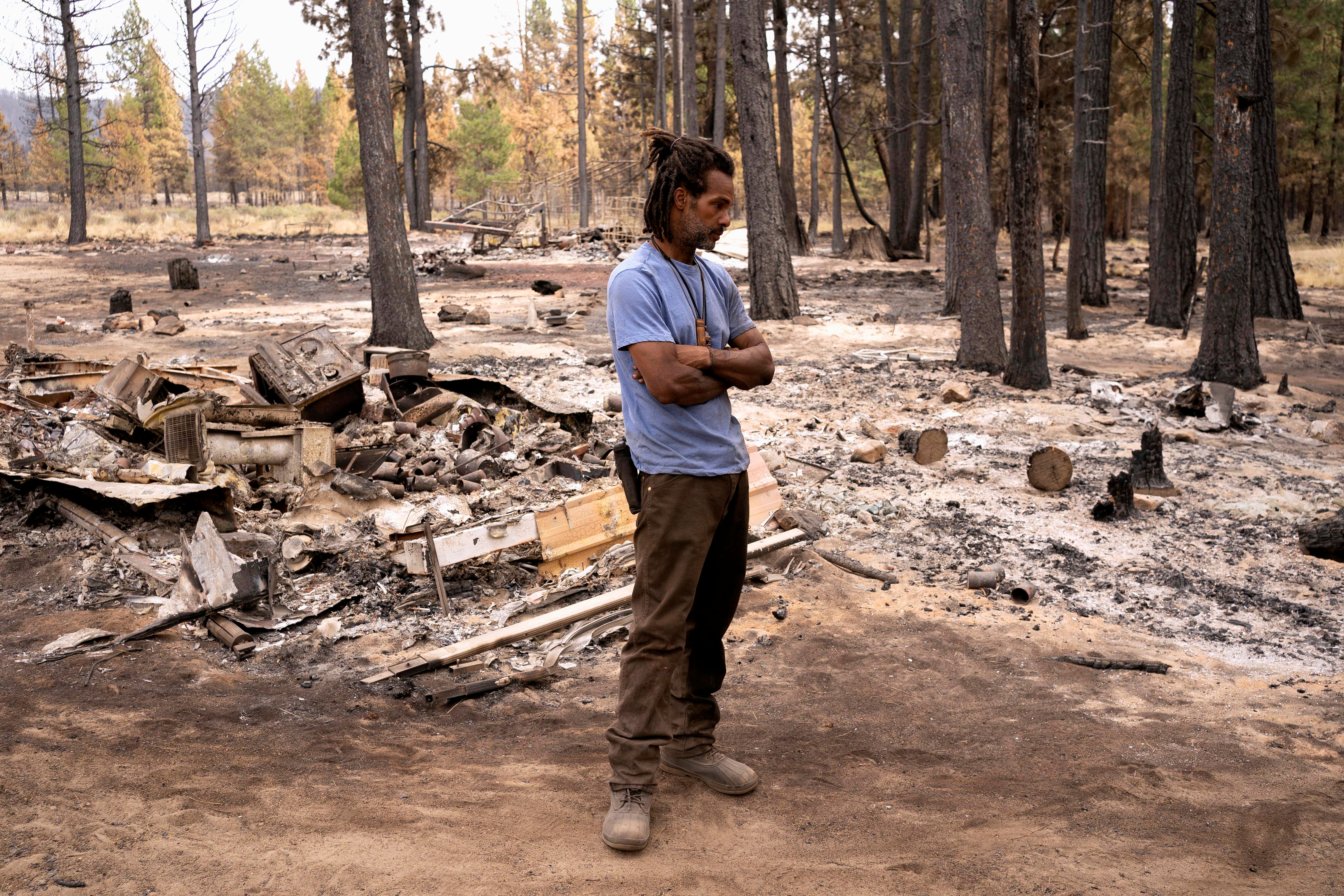 When they returned, they saw all their belongings — toys, suitcases of clothes, baby photos, letters from grandparents who had passed away — were reduced to ash. The trailers they lived in and the treehouses and bunkbeds he built for the three kids were destroyed.