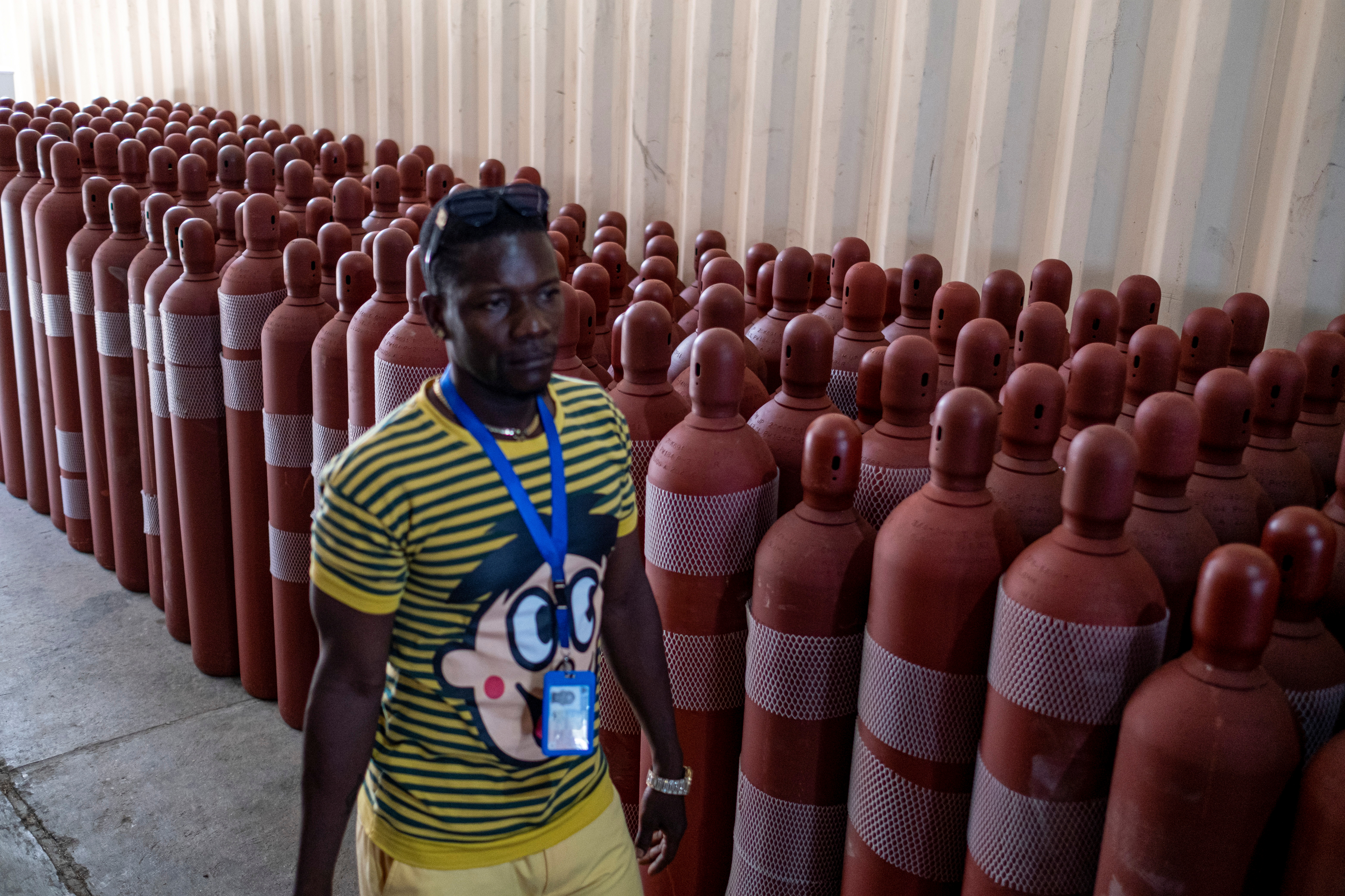 In a cavernous warehouse, where supplies were stacked high next to an industrial oxygen concentrator capable of filling 40 tanks a day, Frechette paused at a spot where coffins were assembled with scraps of wood.
