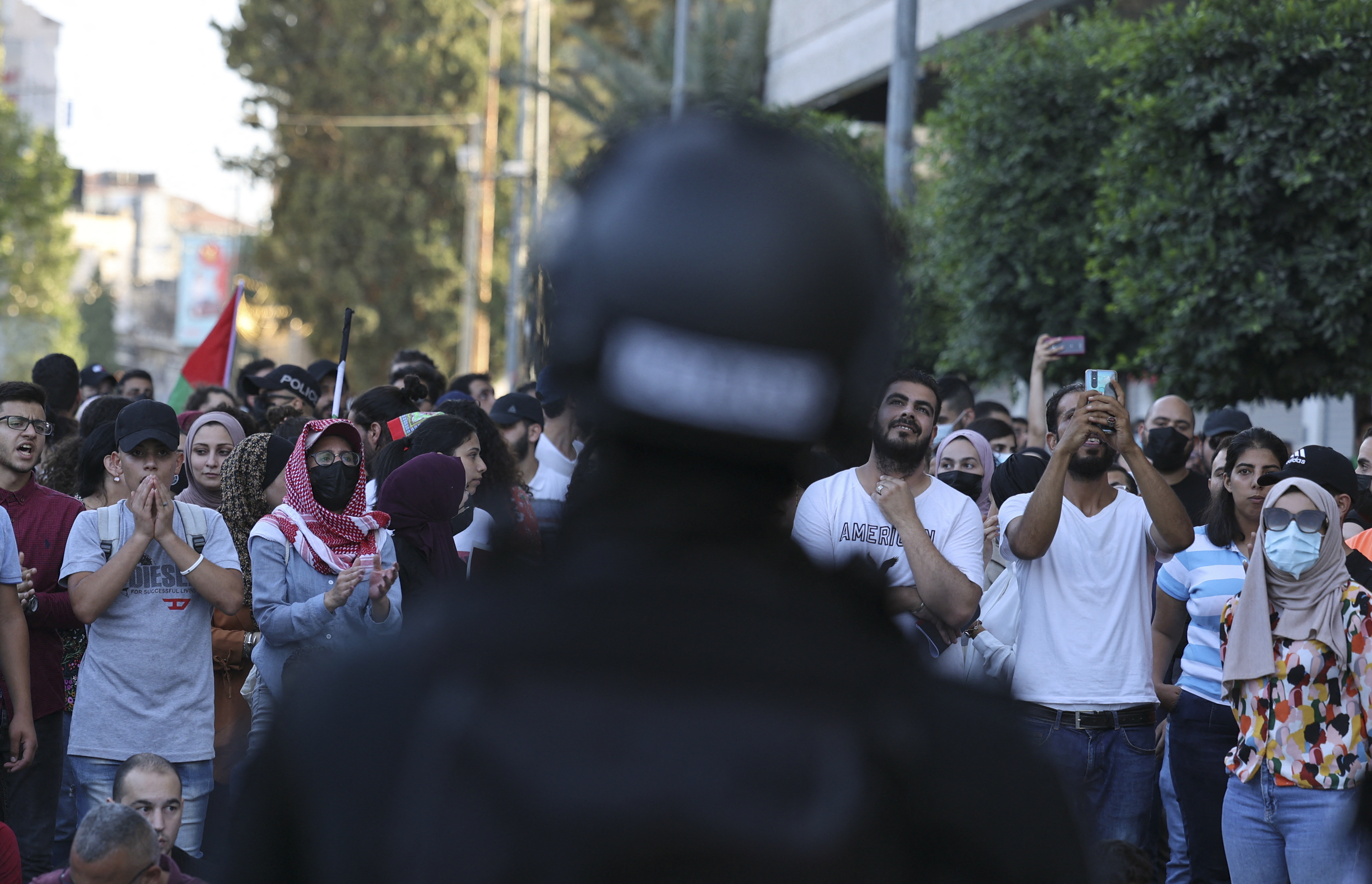 Reporting from Ramallah, Al Jazeera’s Nida Ibrahim said that although police forces are usually stationed at protests in the occupied West Bank, there were no visible forces during Saturday’s demonstration.