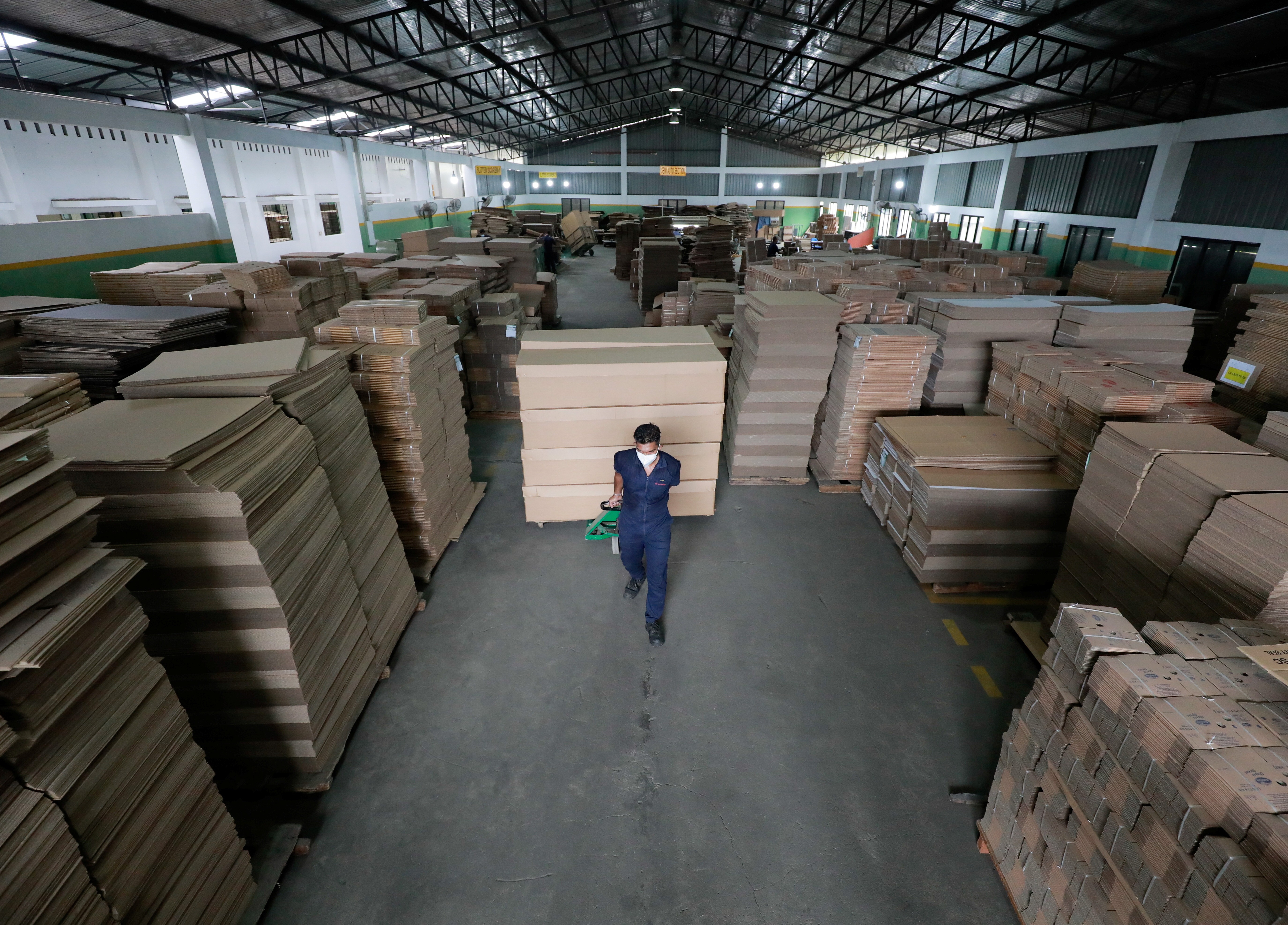 At a factory in Sri Lanka’s Dehiwala-Mount Lavinia city, workers use staples and glue to assemble long cardboard boxes, which will be used as coffins for some of the country’s coronavirus victims.