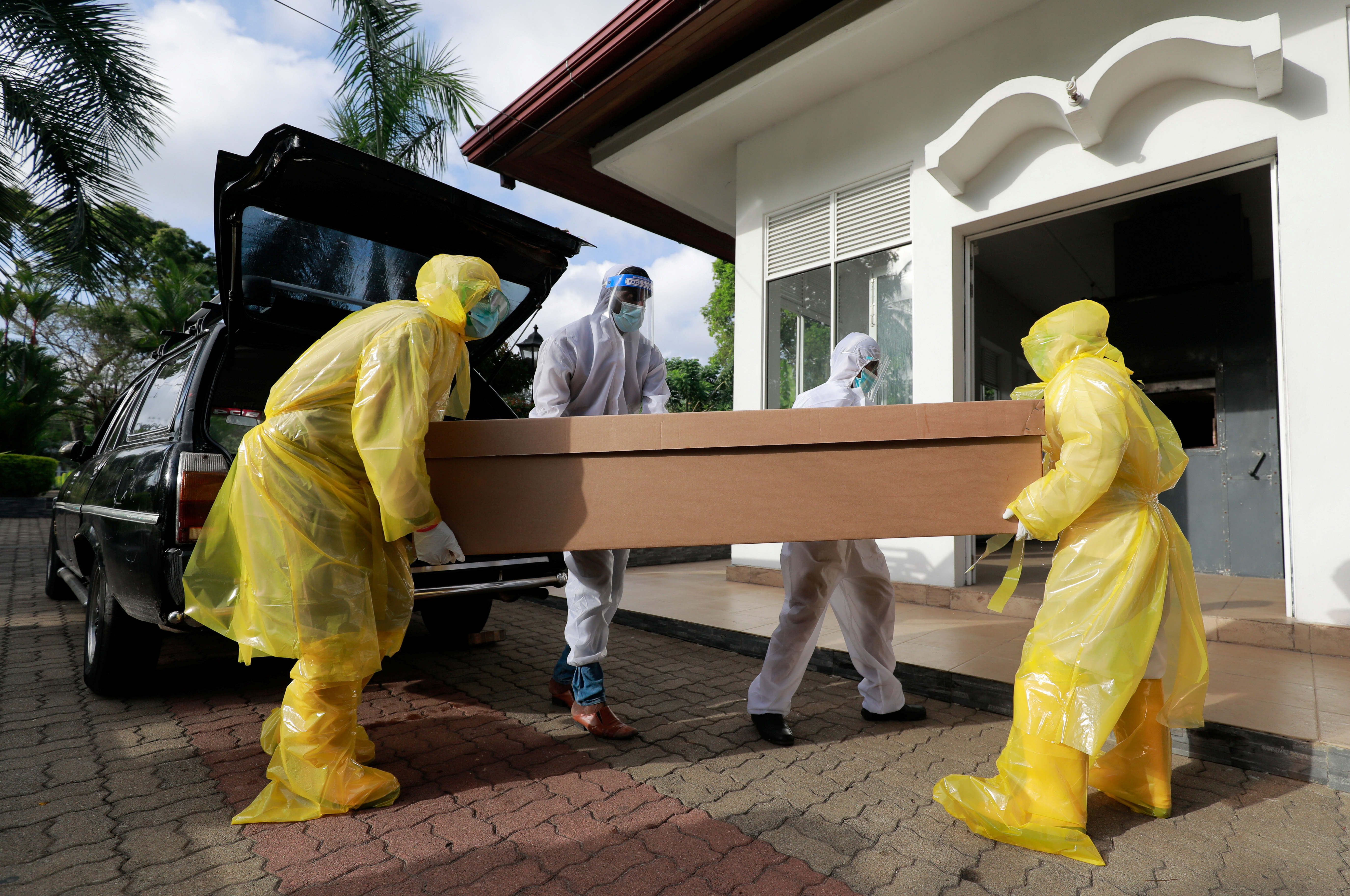 Amid COVID surge, Sri Lankans use cardboard coffins for cremation