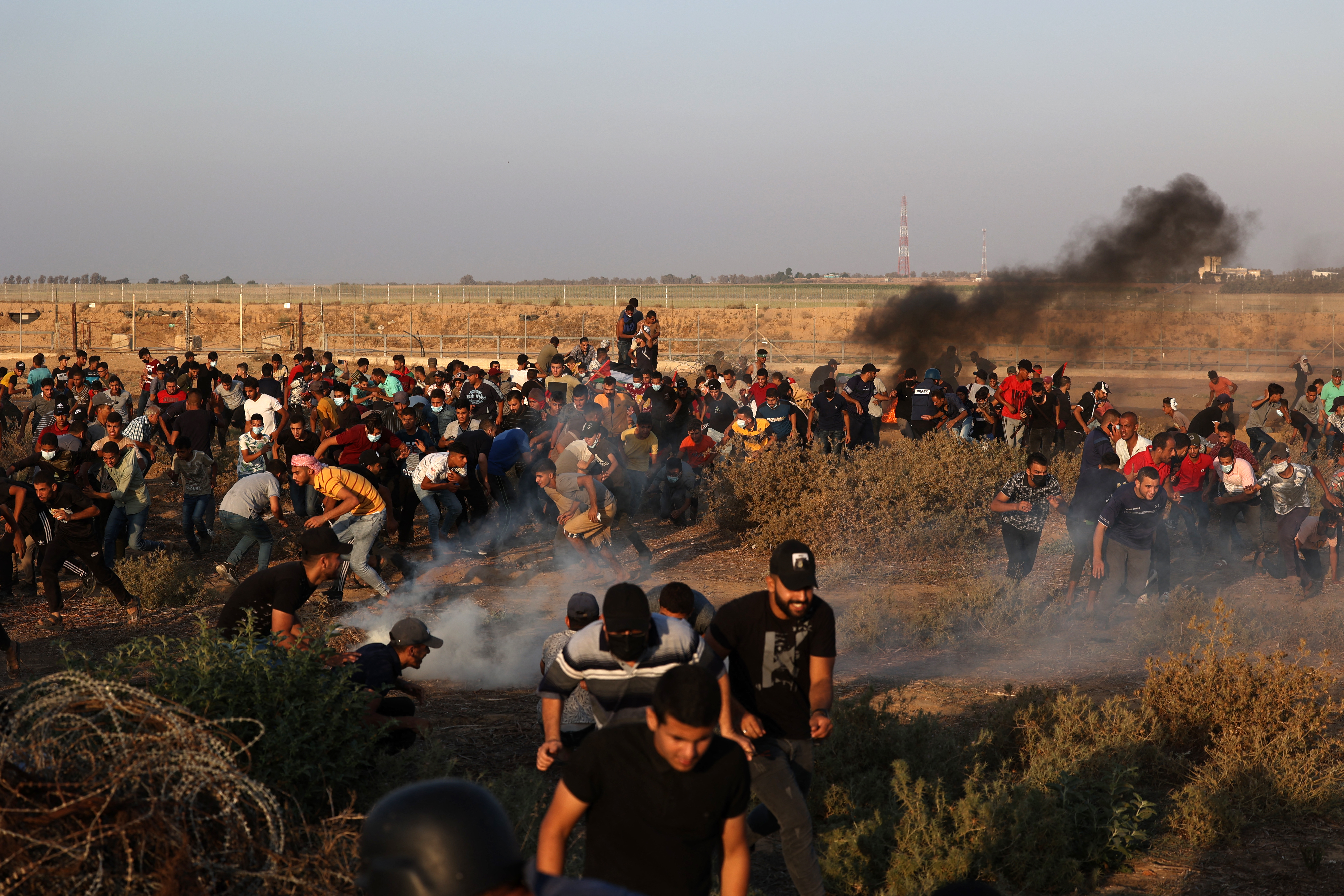The Al Aqsa TV television network, which is run by Hamas, the Palestinian group that governs Gaza, showed crowds of people approaching the fence, then running away when an Israeli military vehicle arrived. Tear gas could be seen floating in the wind.