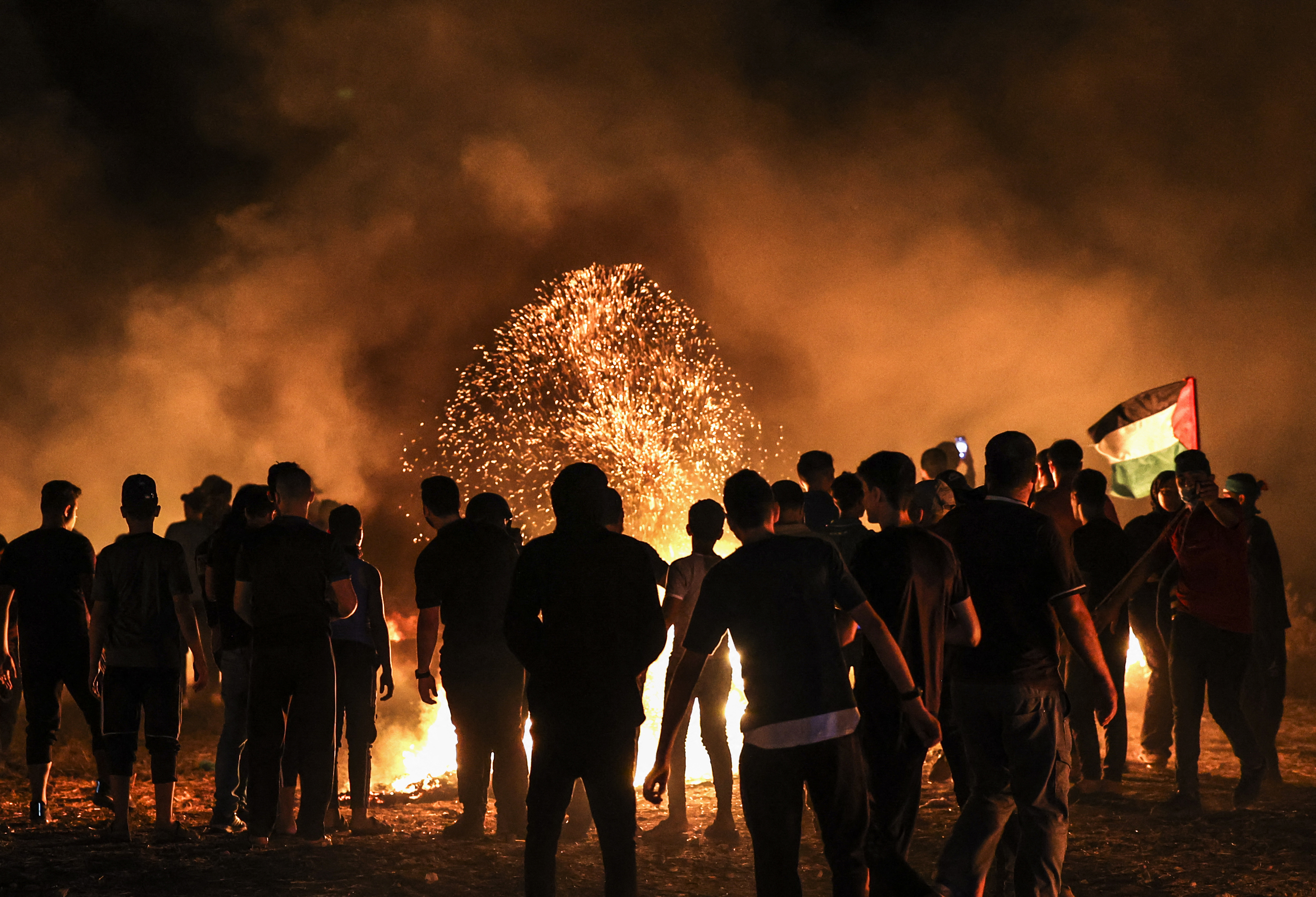 The army said on Sunday hundreds of Palestinians gathered along the separation barrier between Israel and the Gaza Strip during the night, hurling explosives and burning tyres and that troops responded with “riot dispersal means”.