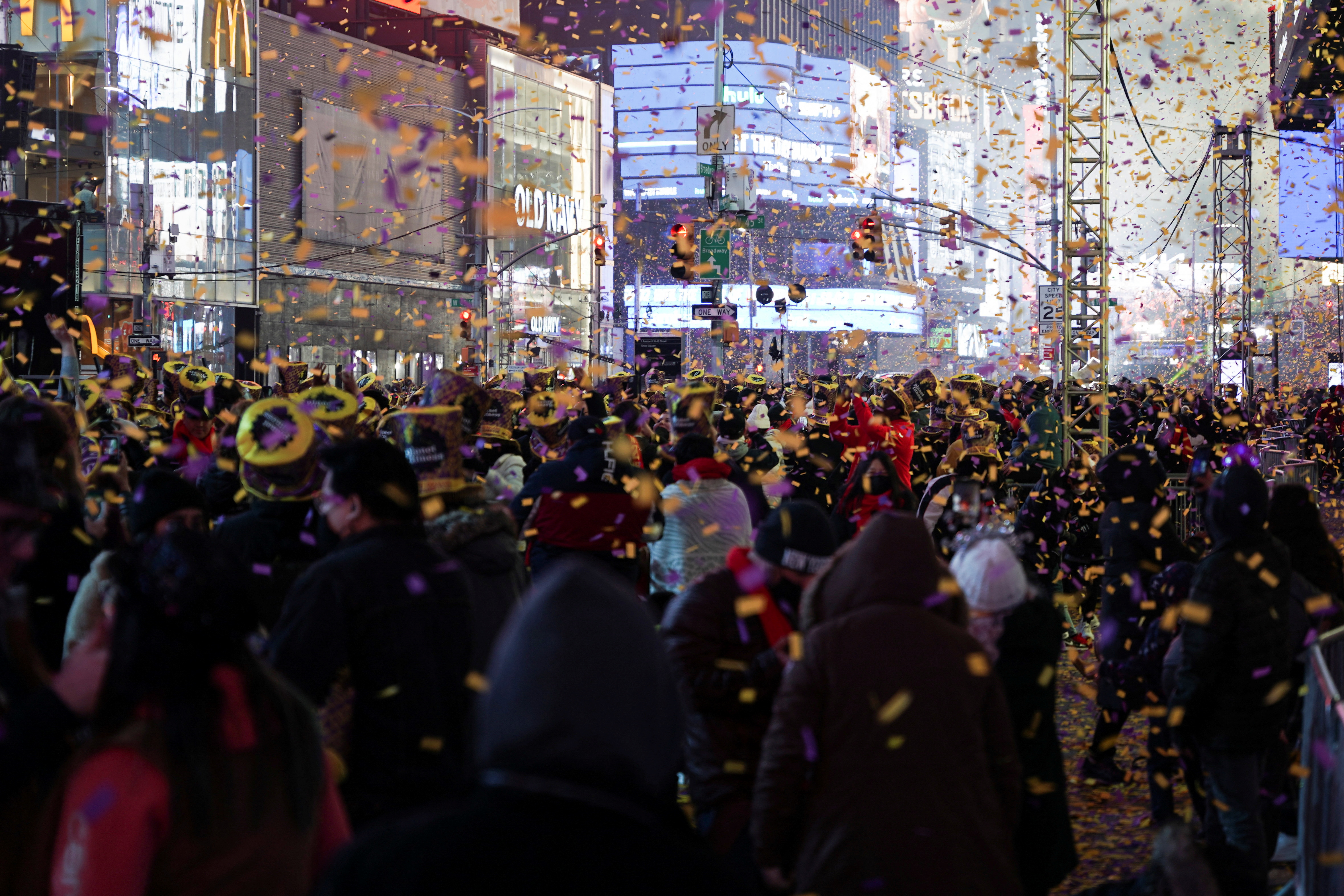 The illuminated ball made of Waterford crystal panels slid down its pole at midnight in Times Square, but only 15,000 people were allowed into the official viewing area.