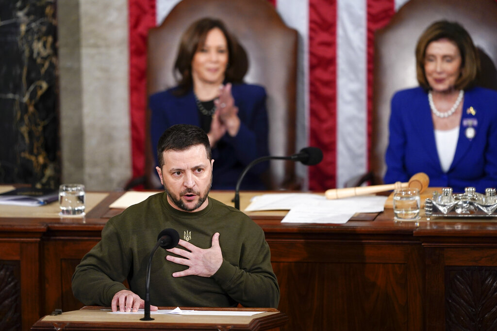 “It is a great honour for me to be at the US Congress and speak to you and all Americans. Against all doom and gloom scenarios, Ukraine did not fall. Ukraine is alive and kicking,” he said.