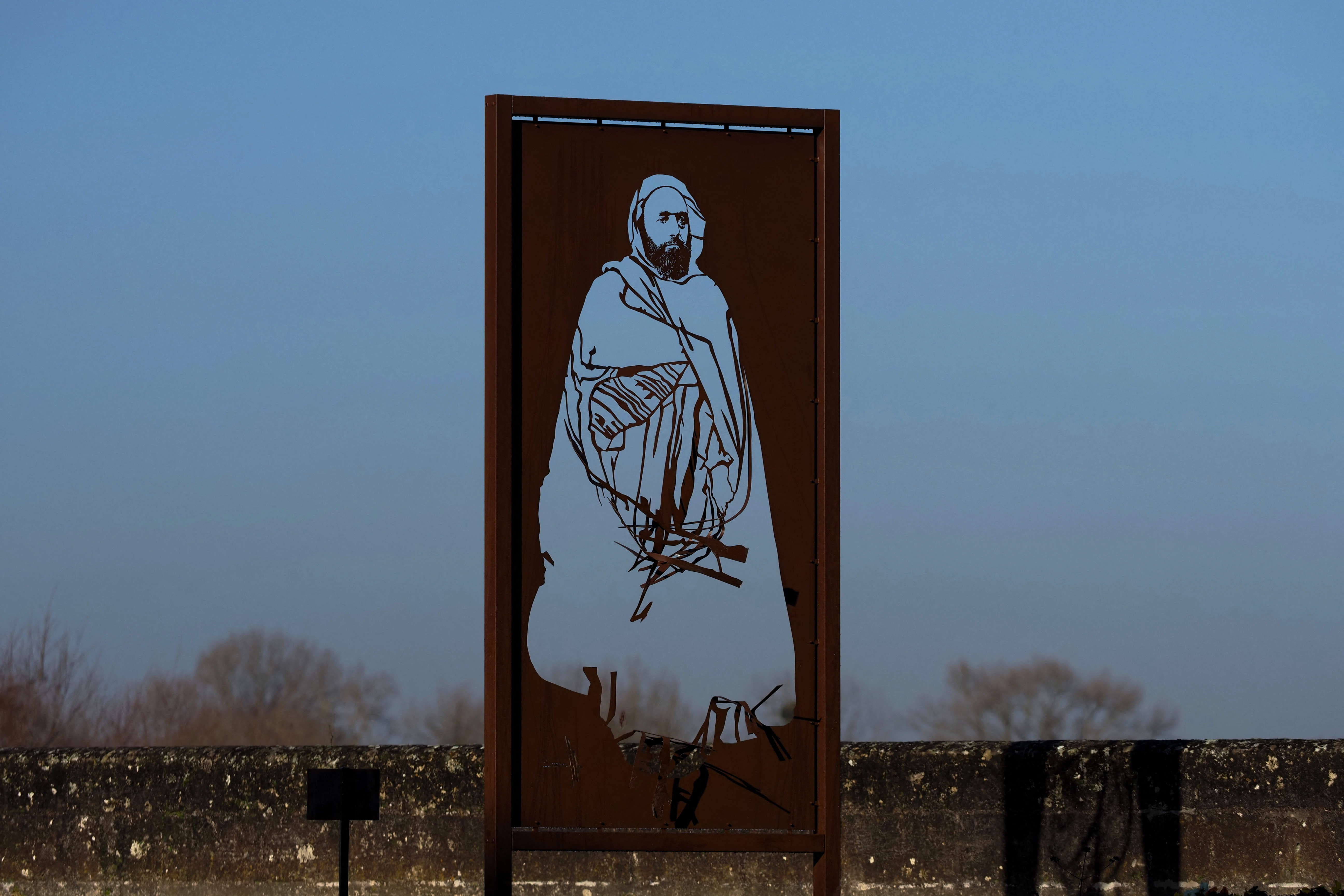 The silhouette of the Muslim-scholar-turned-military-leader, who resisted French rule but was later feted as a hero in France for his defence of Christians in the Middle East, looks across the Loire river at the castle where he was imprisoned.