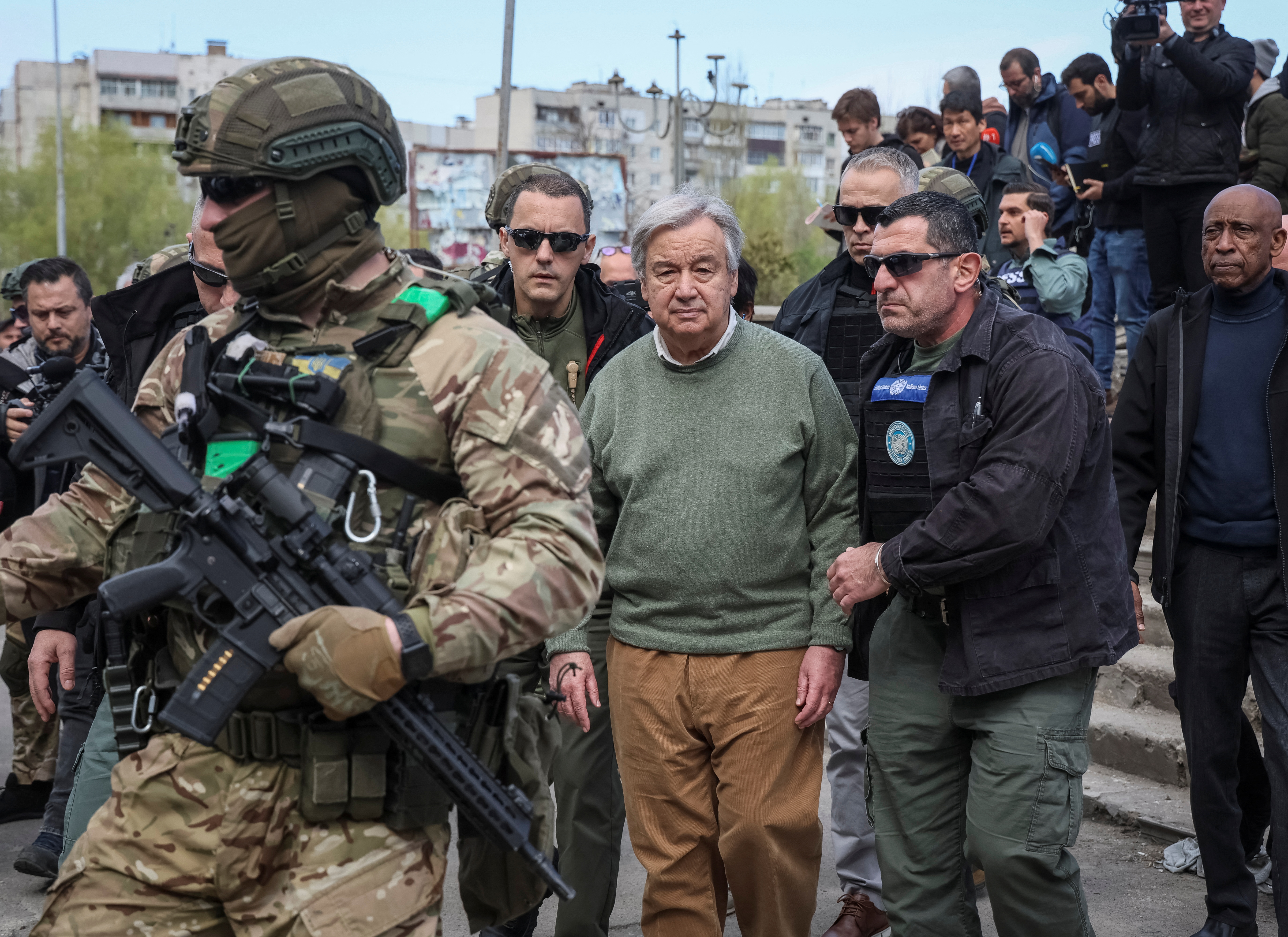 The bombardment came barely an hour after Ukraine President Volodymyr Zelenskyy held a news conference with Guterres, who toured some of the destruction in and around Kyiv and condemned attacks on civilians.