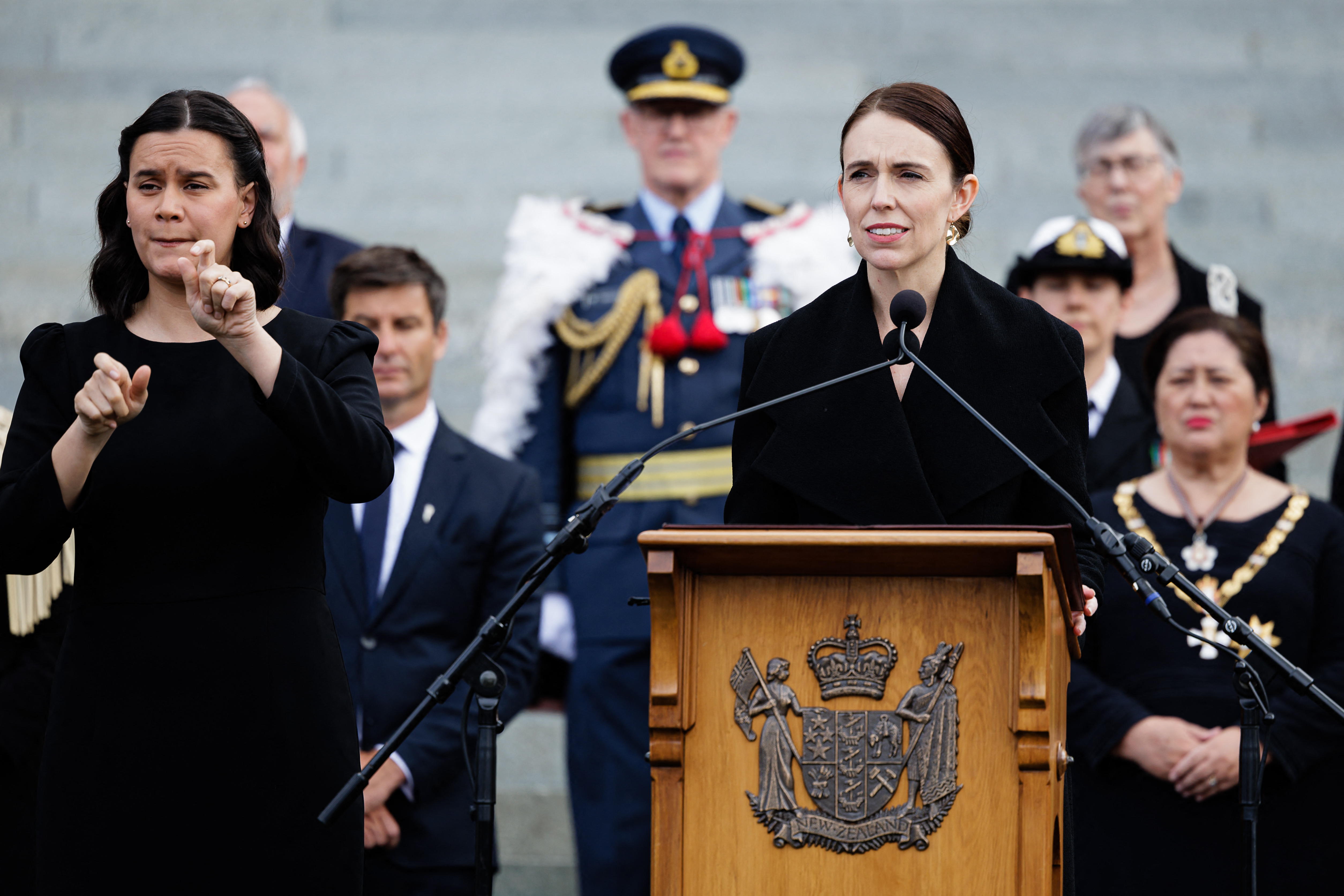 Speaking from parliament’s steps, Prime Minister Jacinda Ardern said the event acknowledged the queen’s son, “His Majesty King Charles III as our sovereign”.