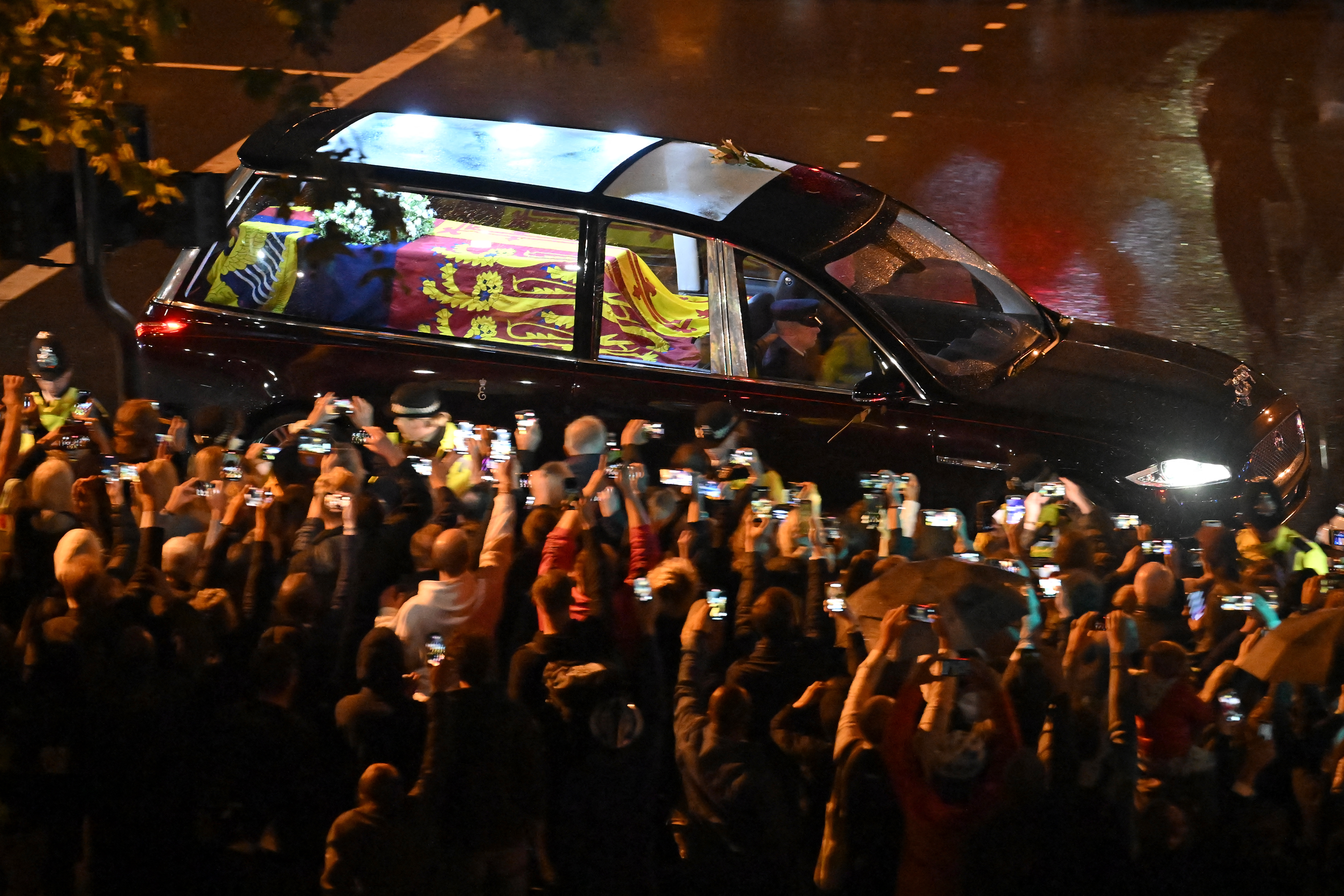 Before reaching London, the coffin was flown from Scotland in a Royal Air Force plane after lying at rest in St Giles Cathedral in Edinburgh overnight. About 33,000 people had filed past the coffin through the night in the Scottish capital to pay their respects.