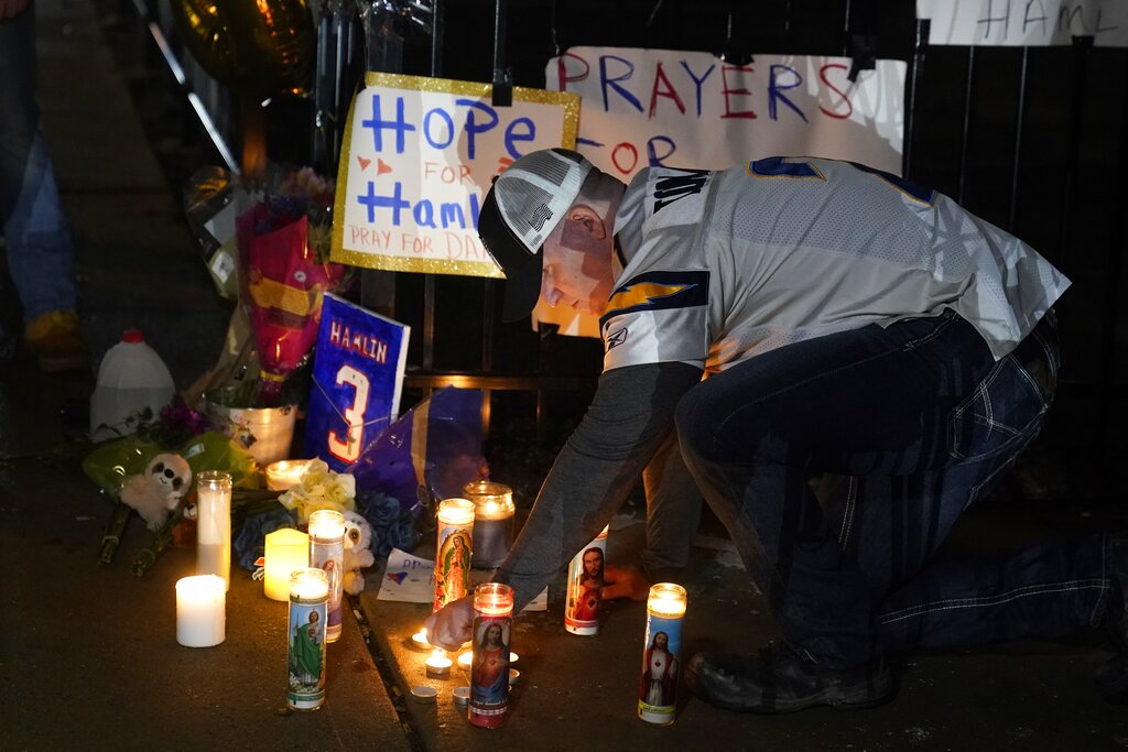 Vigils have been held in Cincinnati and outside the Bills’ home stadium as fans wish Hamlin a speedy recovery. Donations have also poured into the Chasing M’s Foundation, a charity Hamlin started, which had launched an effort to raise funds for children’s toys.