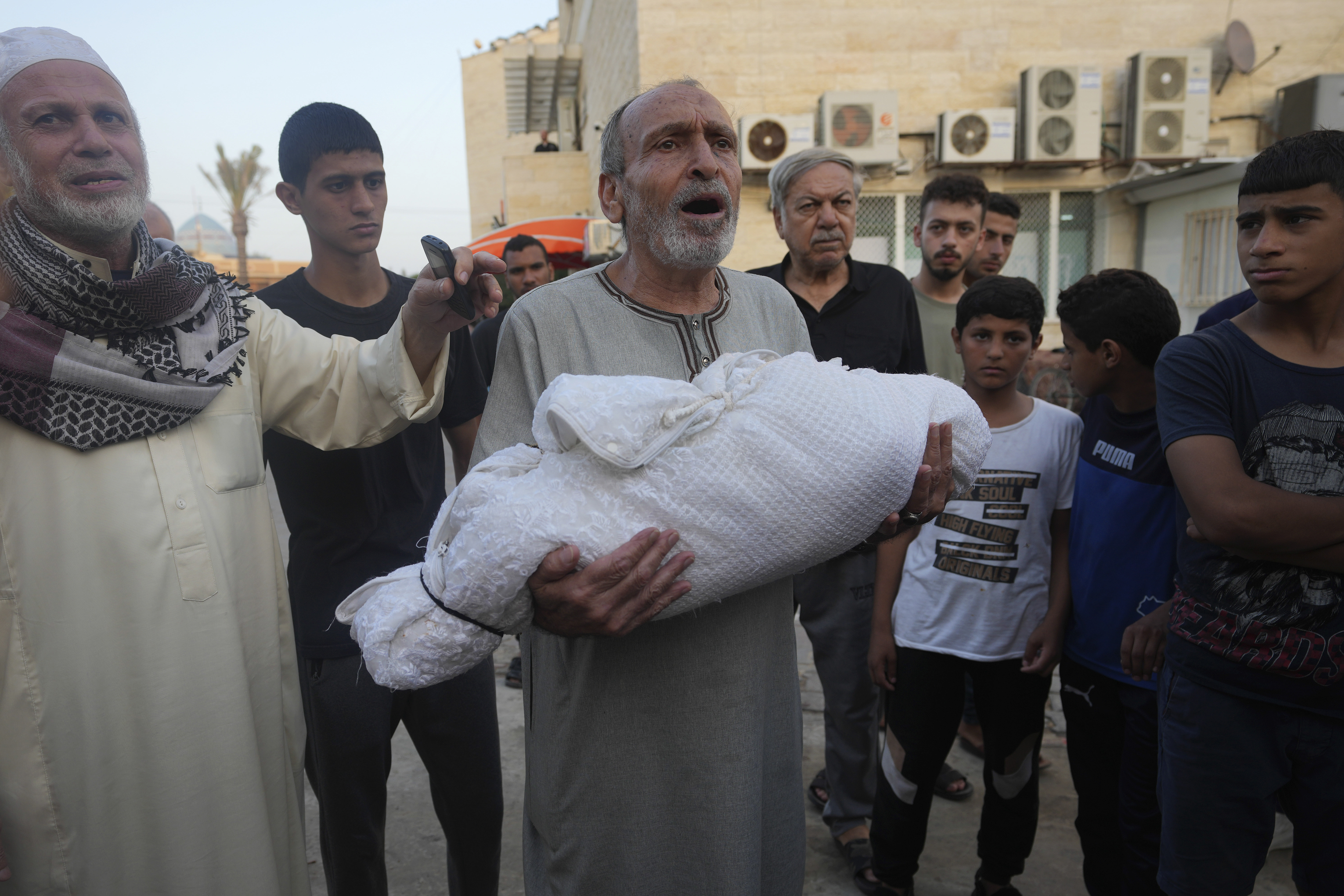 ![Palestinians mourn relatives killed in the Israeli bombardment in Al-Aqsa Hospital in Deir Al-Balah, south of the Gaza Strip, Monday, Oct. 23, 2023 [Ali Mohmoud/AP Photo]](/wp-content/uploads/2023/10/AP23296466324808-1698084450.jpg?w=770&resize=770%2C513&quality=80)