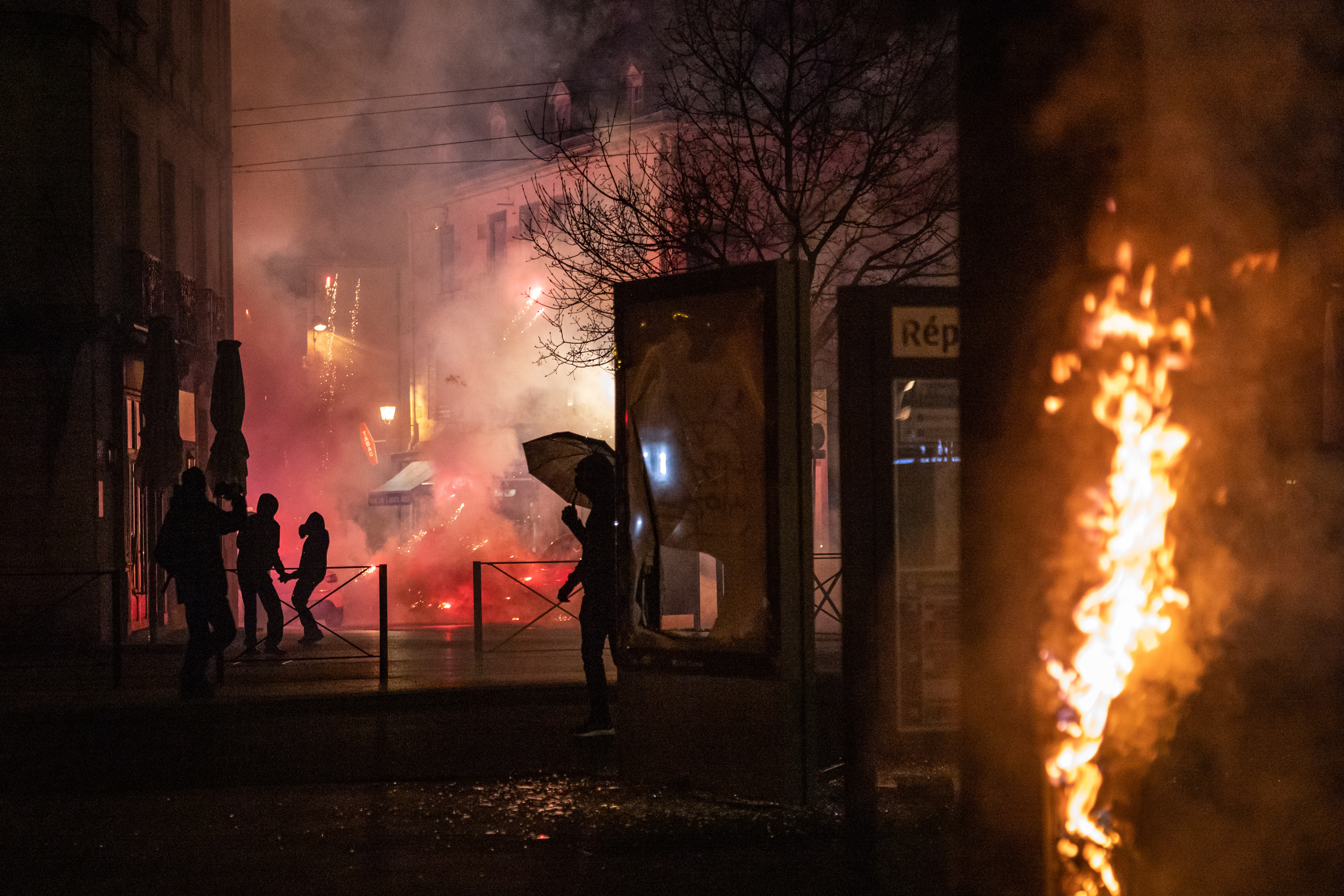 Protests were reported on Monday night in Dijon, Strasbourg — where protesters smashed the windows of a department store — Lyon, and Rennes.