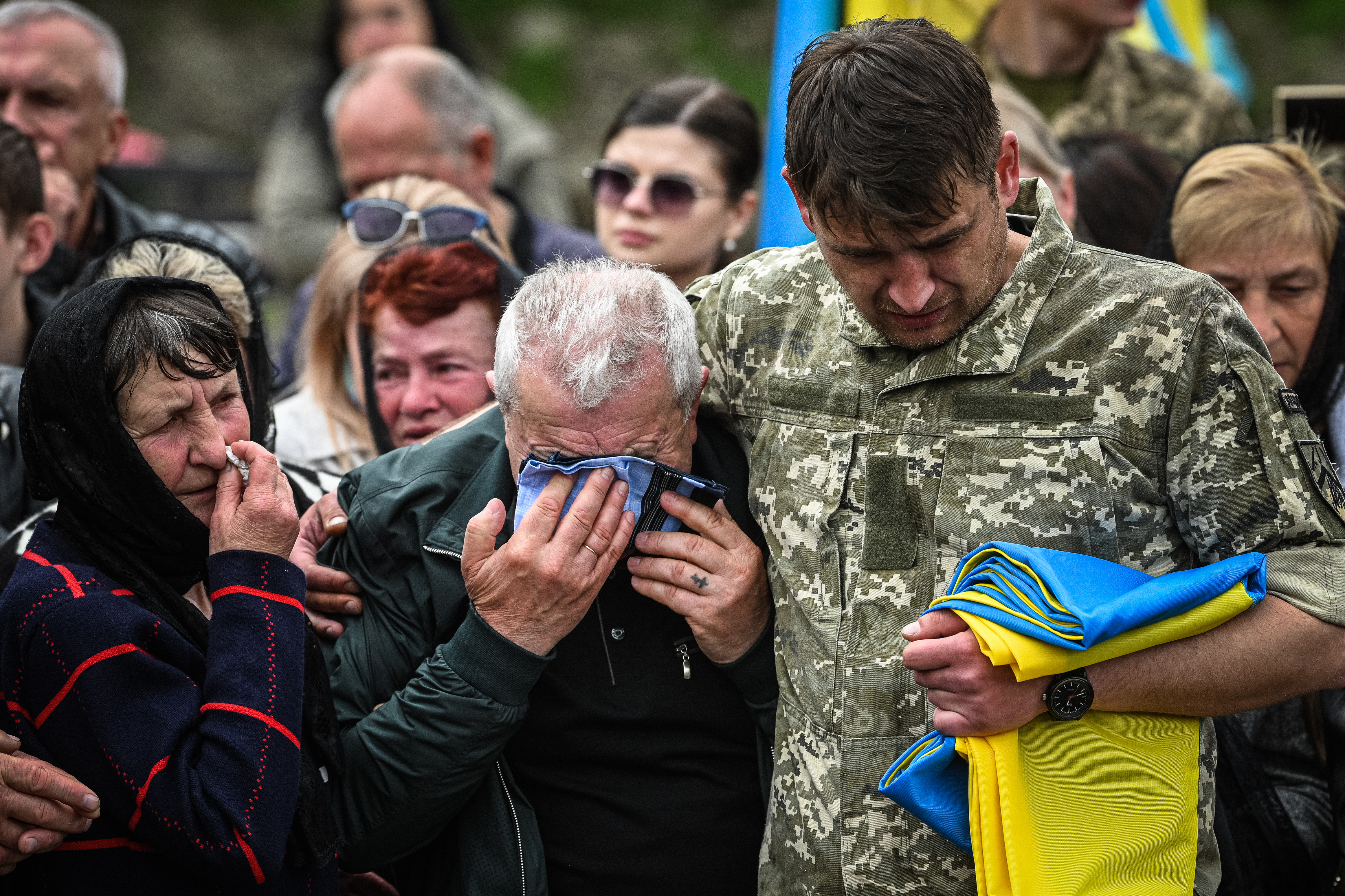 ![Relatives and friends of Ukrainian serviceman killed in combat with Russian troops, mourn, amid the Russian invasion of Ukraine. [Yuriy Dyachyshyn/AFP]](/wp-content/uploads/2023/05/33FA4TR-highres-1684456038.jpg?resize=770%2C513&quality=80)