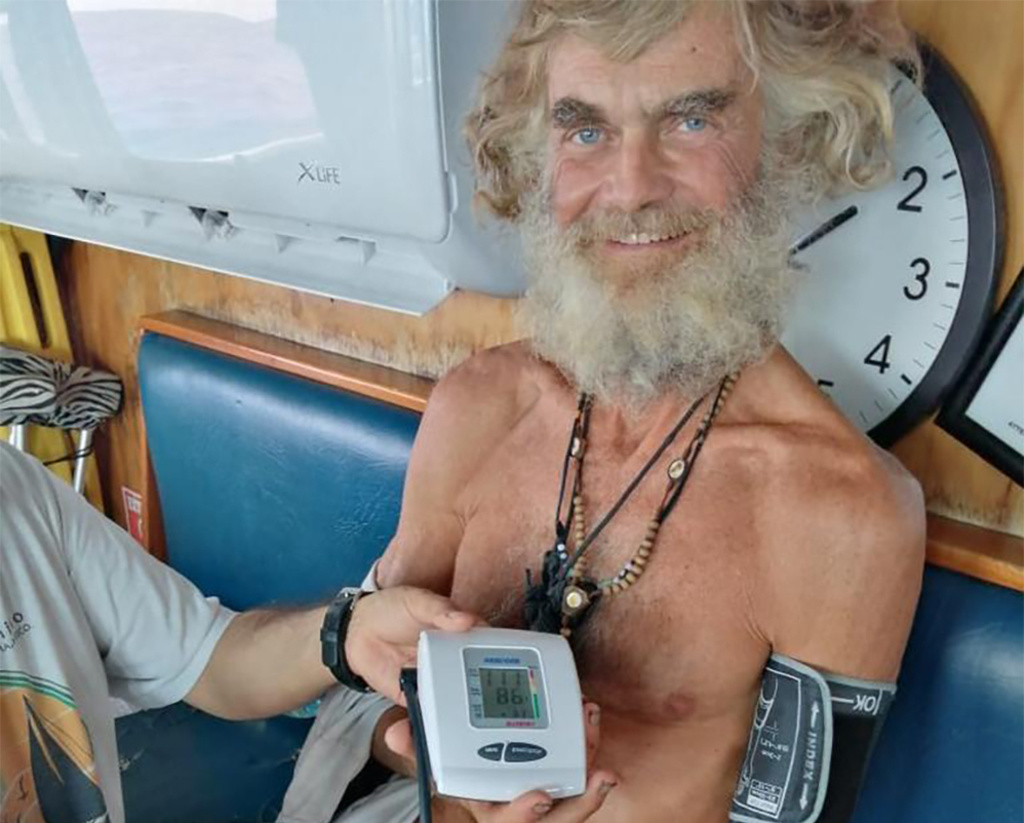 In photographs of the rescue, provided by Grupomar to the Associated Press news agency, a smiling, bearded and thin Shaddock is seen with a blood pressure cuff around his arm, holding a box of pain medication inside the fishing boat’s cabin.