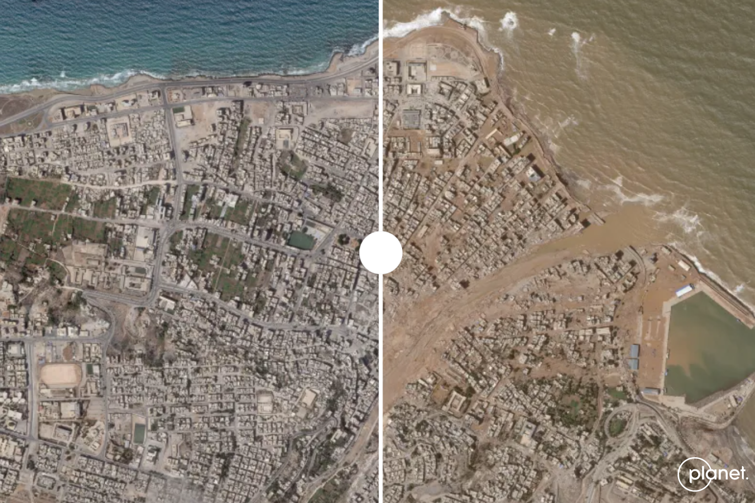 Drag to the left to see what remains of Derna [PlanetLabs]