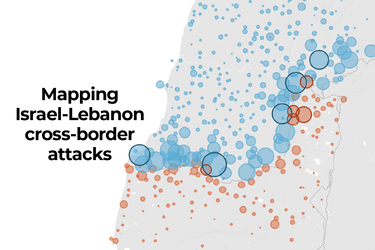 Mapping over a year of cross-border attacks between Israel and Lebanon