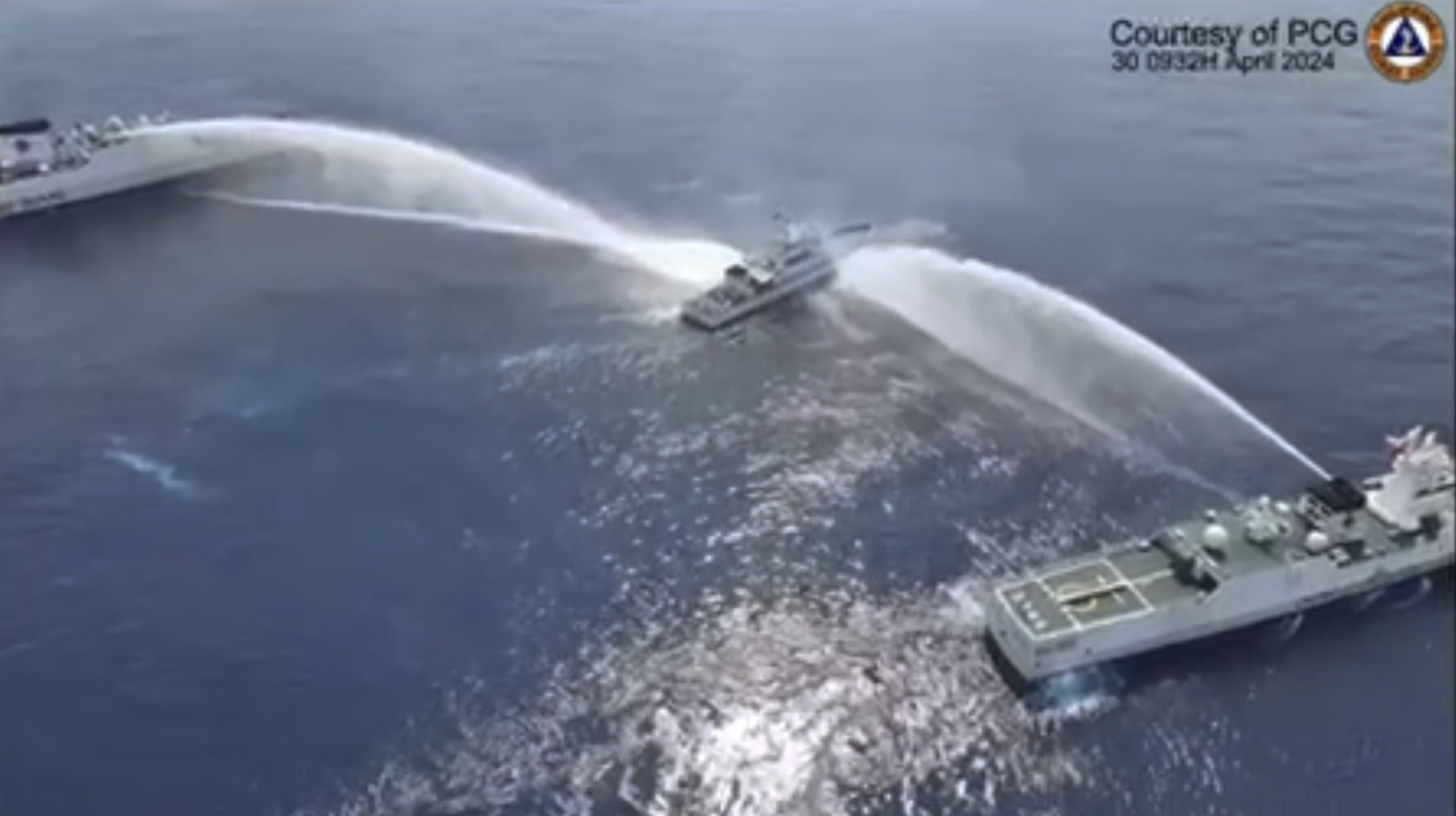 A video accompanying the post showed water cannon hitting the port side of the boat as well as the starboard side closer to the bow.