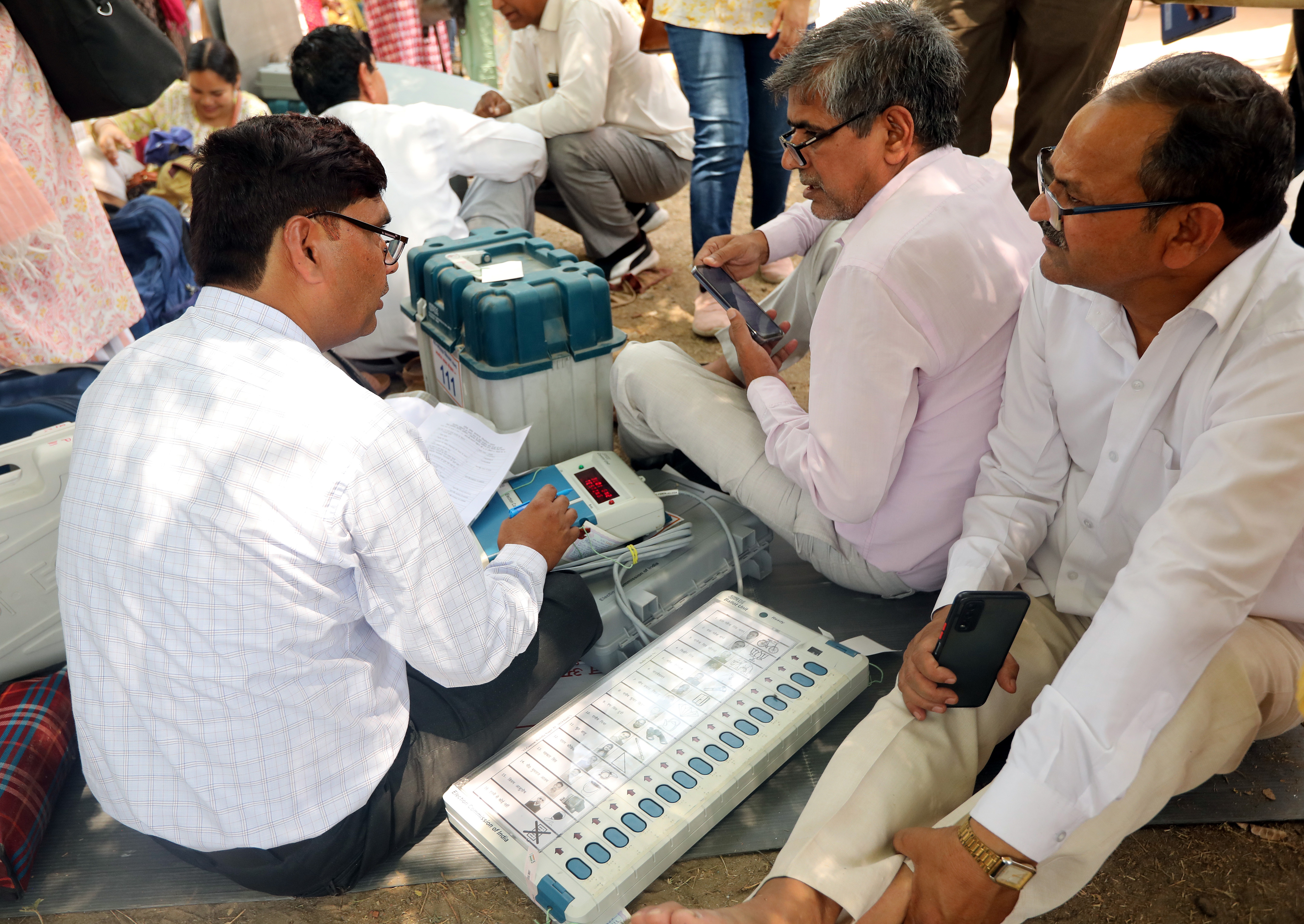 - As voting ends, the EVMs are sealed and stored in a strongroom in the parliamentary constituency. On the day of counting, the EVMs are taken out and unsealed in the presence of representatives from all participating political parties.