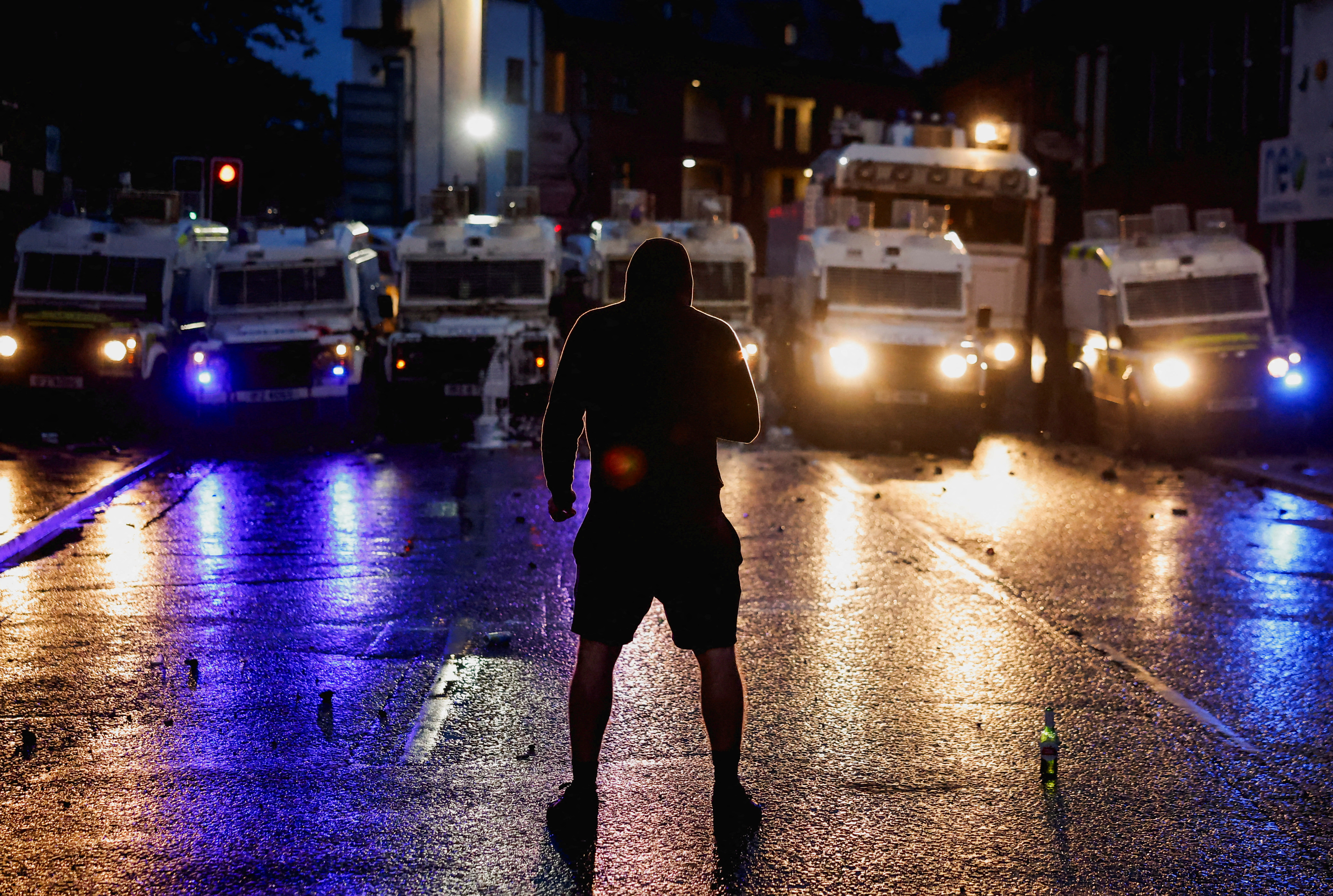 The most intense violence took place on Tuesday in Ballymena, when hundreds of masked rioters attacked police and set buildings and cars on fire. A smaller crowd threw rocks, fireworks and petrol bombs at police on Wednesday, as police officers responded with water cannon.