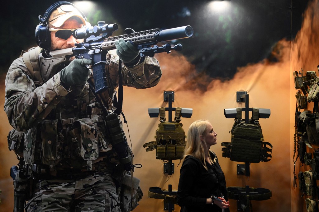 ![A visitor looks at riffles during the Defence and Security Equipment International (DSEI) fair at the ExCeL centre, in London. [Daniel Leal/ AFP]](/wp-content/uploads/2025/08/000_33UU4BT-1756454217.jpg?resize=770%2C513&quality=80)