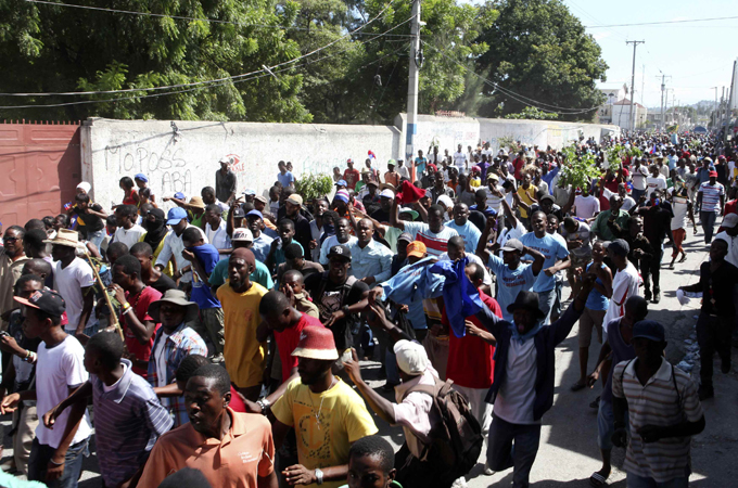 The UN peacekeeping mission in Haiti on Saturday urged Martelly and opposition parties to sort out their differences in a peaceful manner. The world body also dispatched armed troops for the demonstration to join riot police with shields and helmets.