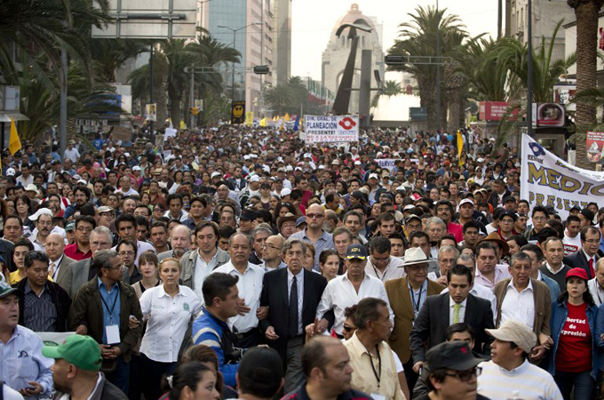 The march was organised by the Party of the Democratic Revolution (PRD), the leftist opposition to the president’s ruling Institutional Revolutionary Party (PRI).
