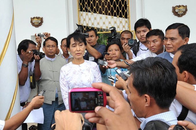 Also on Friday, Information Minister Kyaw Hsan urged Suu Kyi to officially register her National League for Democracy as a party, a step that would imply its acceptance of the government’s legitimacy and also allow it to legally take part in politics.