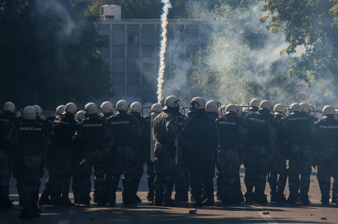The march, guarded by almost 2,000 police officers, took place on Sunday afternoon in Podgorica, the capital of the staunchly conservative Balkan state. The violence occurred when the attackers tried to push through cordons of hundreds of police.