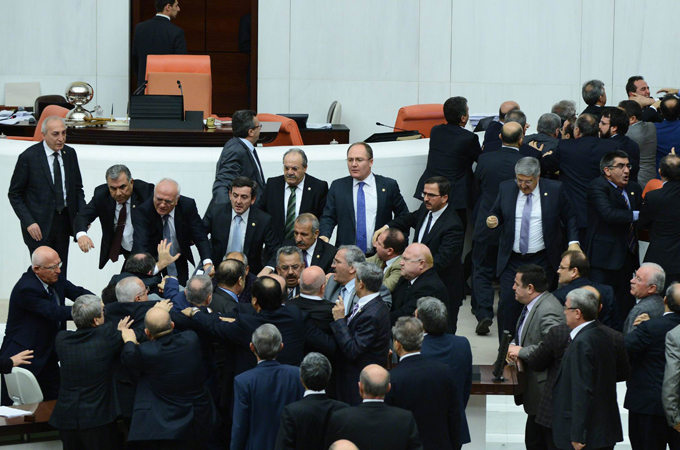 Ali Ihsan Kokturk, legislator from the main opposition Republican People’s Party (CHP), got a bloodied nose in the brawl, while ruling party legislator Bayram Ozcelik’s finger was broken.