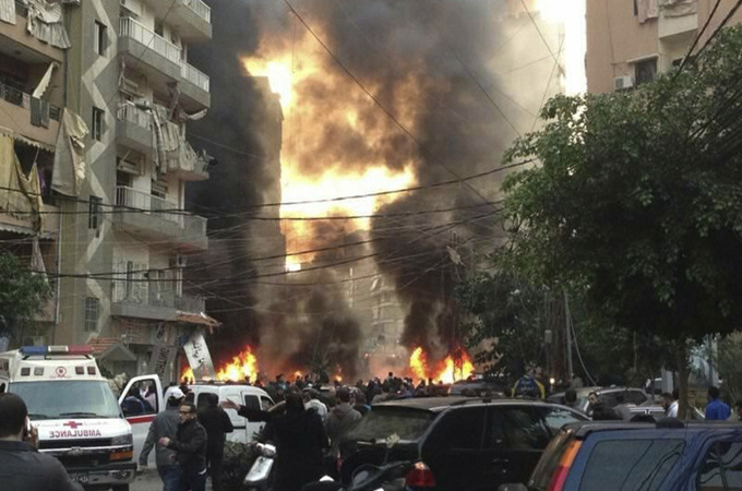 January 2, 2014: A powerful explosion rocks the southern suburbs of the Lebanese capital Beirut, a Hezbollah stronghold, during rush hour, killing at least four people and wounding scores more.
