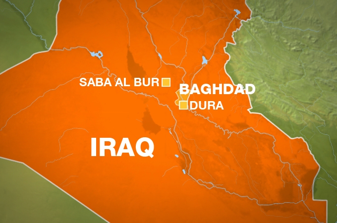 Four bombs in the Saba al-Bur area north of Baghdad killed at least 13 people, while another bomb blast in a market in the Dura area of south Baghdad killed 10, the officials said.