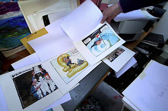 The Listening Post spent a couple of days with two of Britain’s best-known political cartoonists: Gerald Scarfe of The Sunday Times and Steve Bell of The Guardian.