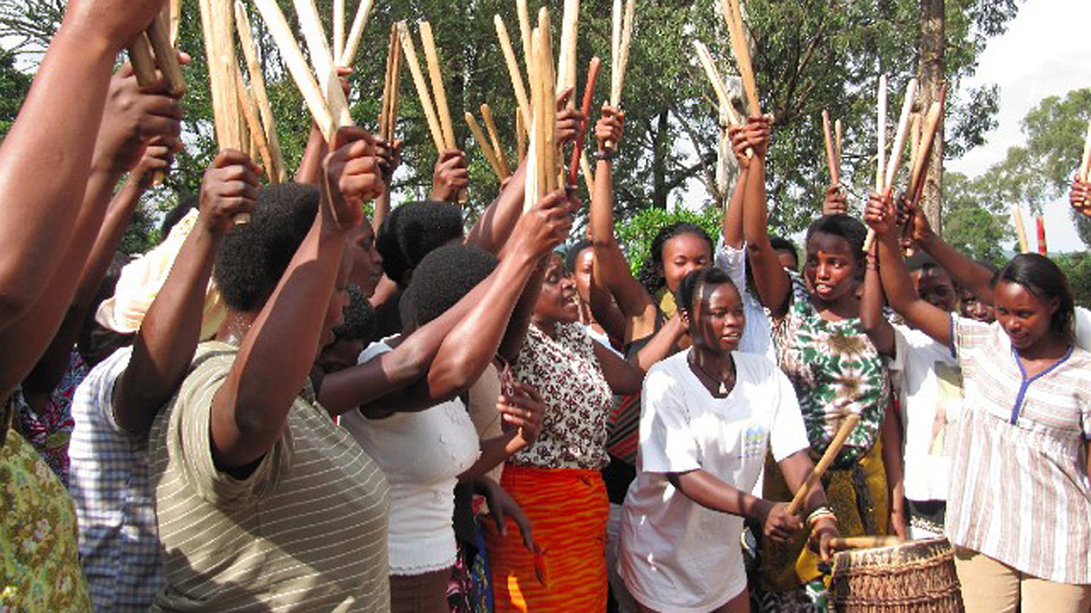 Ten years later, playwright Odile “Kiki” Katese founded Rwanda’s first all-women drumming group with women from both sides of the conflict. The project had the twin goals of healing and empowering women, and was so successful that it evolved into a performing group, Ingoma Nshya.