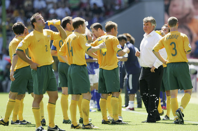 During the 2006 World Cup, Australia faced a much stronger Brazil team in Munich. Yet they held the Selecao scoreless in the first half before losing 2-0, the second goal coming on the break in the 90th minute as the Socceroos pushed for an equaliser.