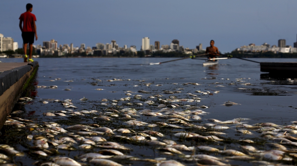 Fish die-offs are a frequent occurrence in Rio’s waterways, which are choked with raw sewage and garbage.