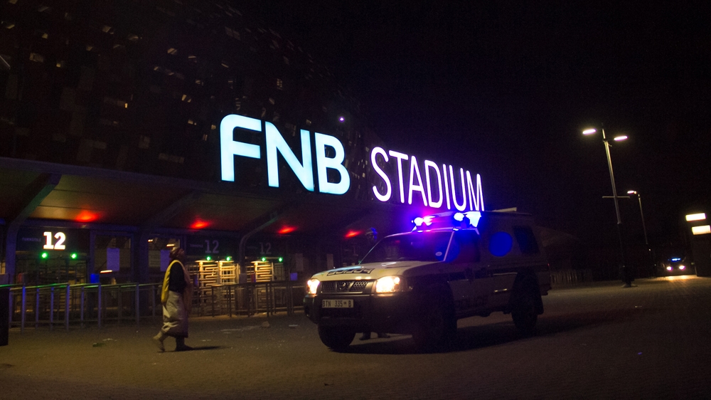 Public and private broadcasters cited officials saying the crush happened outside a gate at the FNB stadium which hosted the final of the World Cup seven years ago, which was won by Spain.