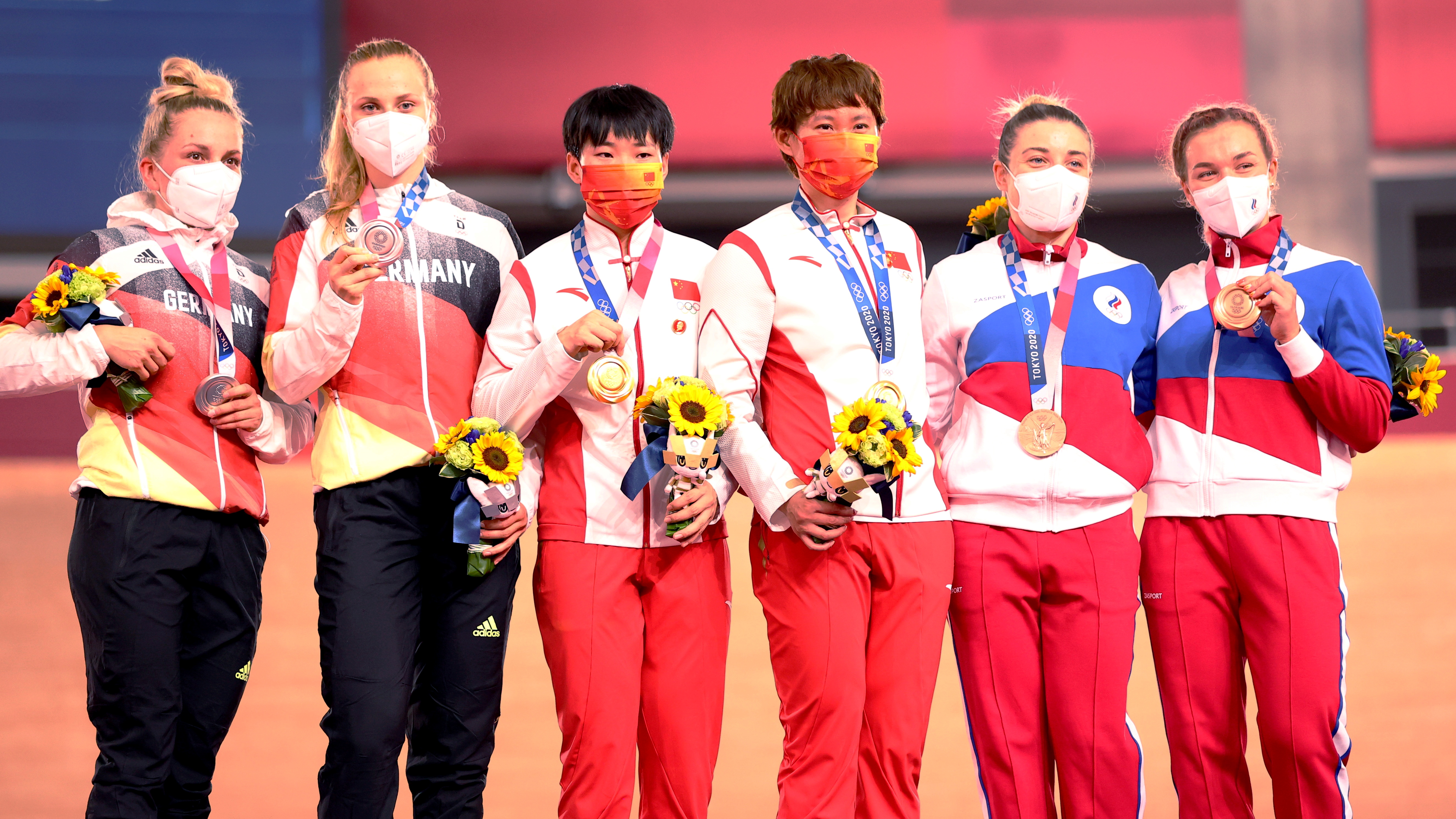 China edged out Germany to win the first track cycling gold of the Tokyo Olympics in the women’s team sprint on Monday after earlier breaking the world record.
