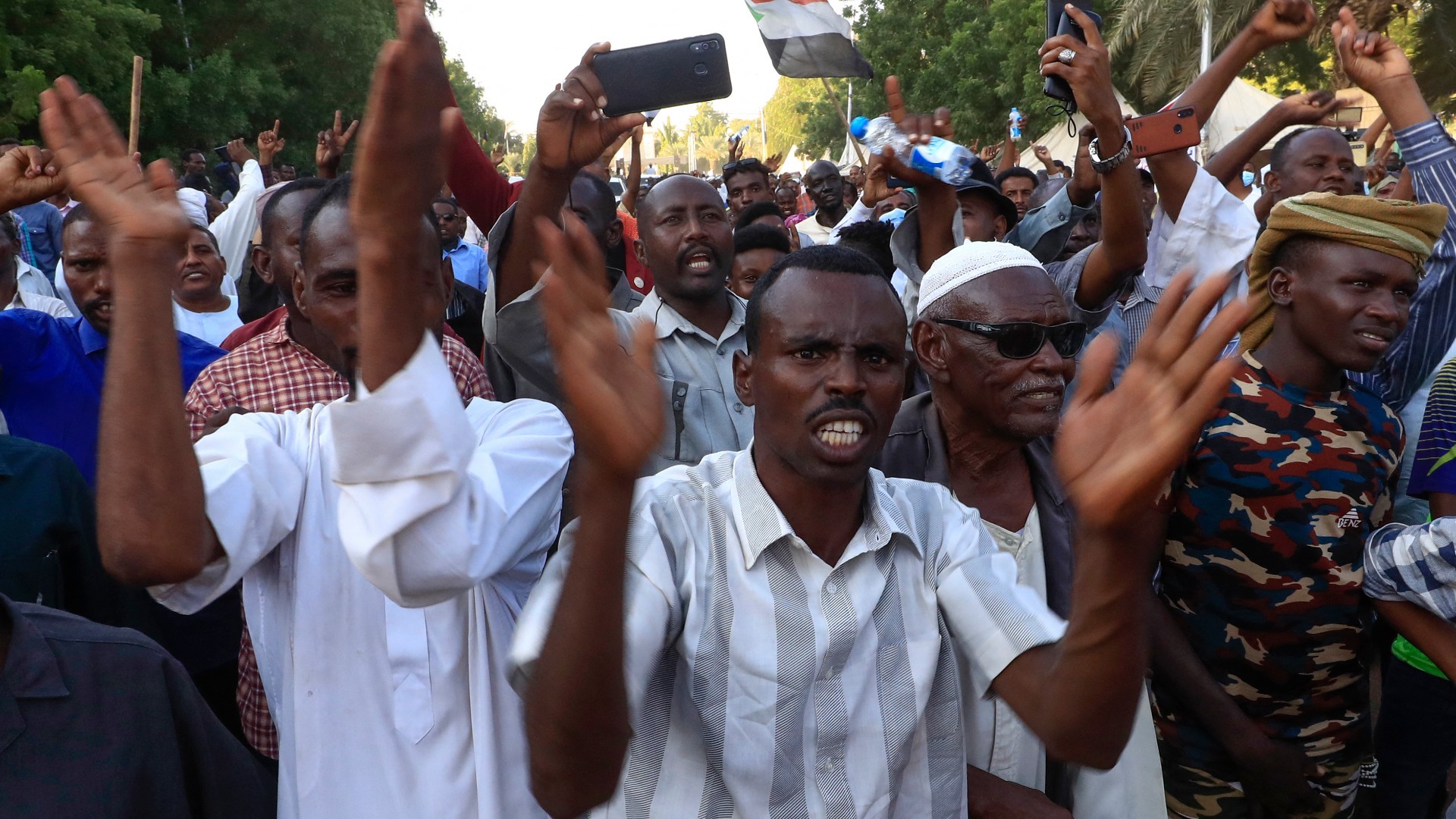 ![Sudanese opponents of the military coup wave national flags as they take part in a protest in the city of Khartoum North near the capital [AFP]](/wp-content/uploads/2021/11/000_9RL2LJ.jpg?resize=770%2C513&quality=80)
