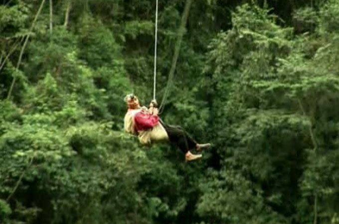 In Bolivia’s jungles and steep cliffs the Yungas people do not walk. They fly on ropes like birds – faster than astronauts.
