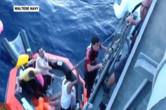 Footage has emerged of the rescue of hundreds of Syrian refugees who say they were left to drown in the Mediterranean off the coast of Malta.