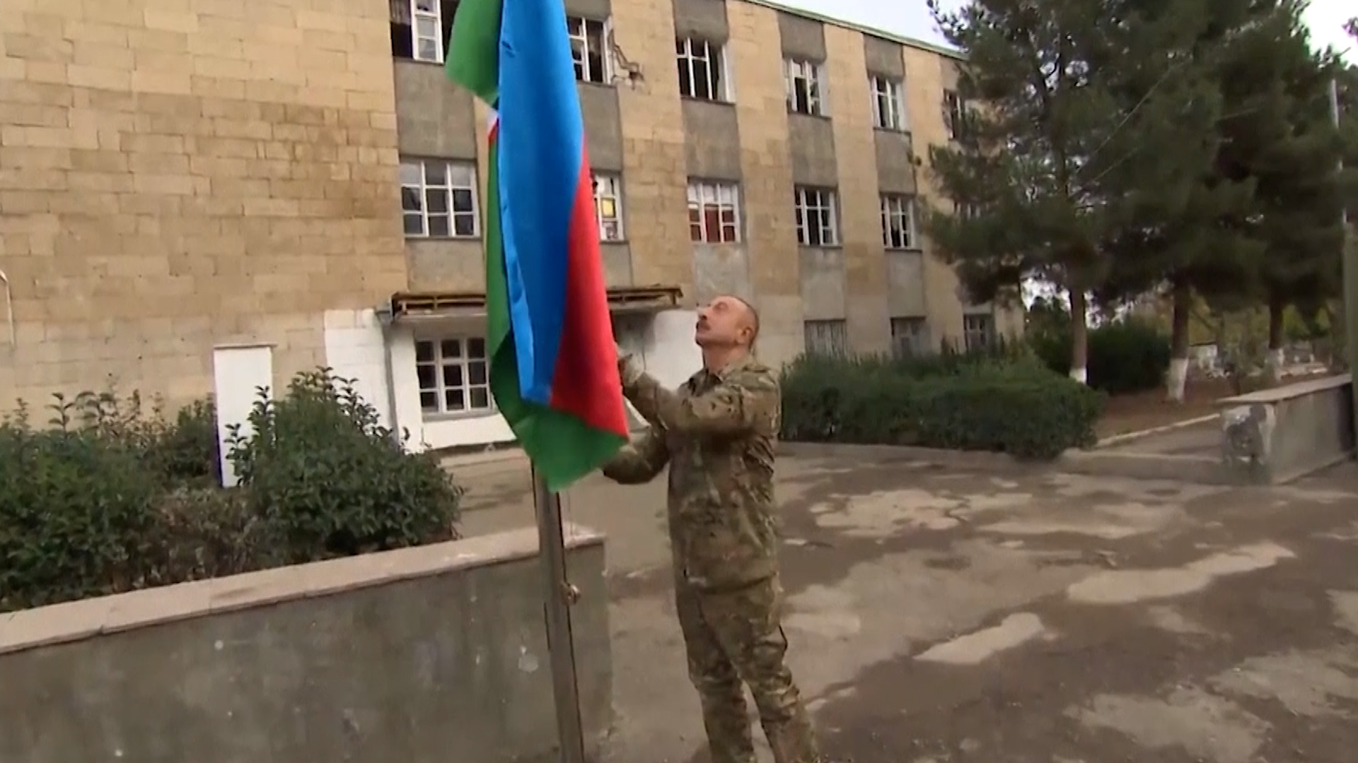 Azerbaijan’s president visits Nagorno-Karabakh, claiming victory.