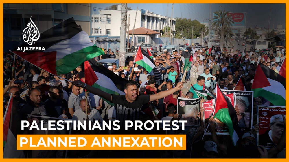 In Gaza City and near the West Bank city of Jericho, Palestinians rallied to call on the international community to stop any Israeli annexation of land under US President Donald Trump’s so-called “Middle East plan”.
