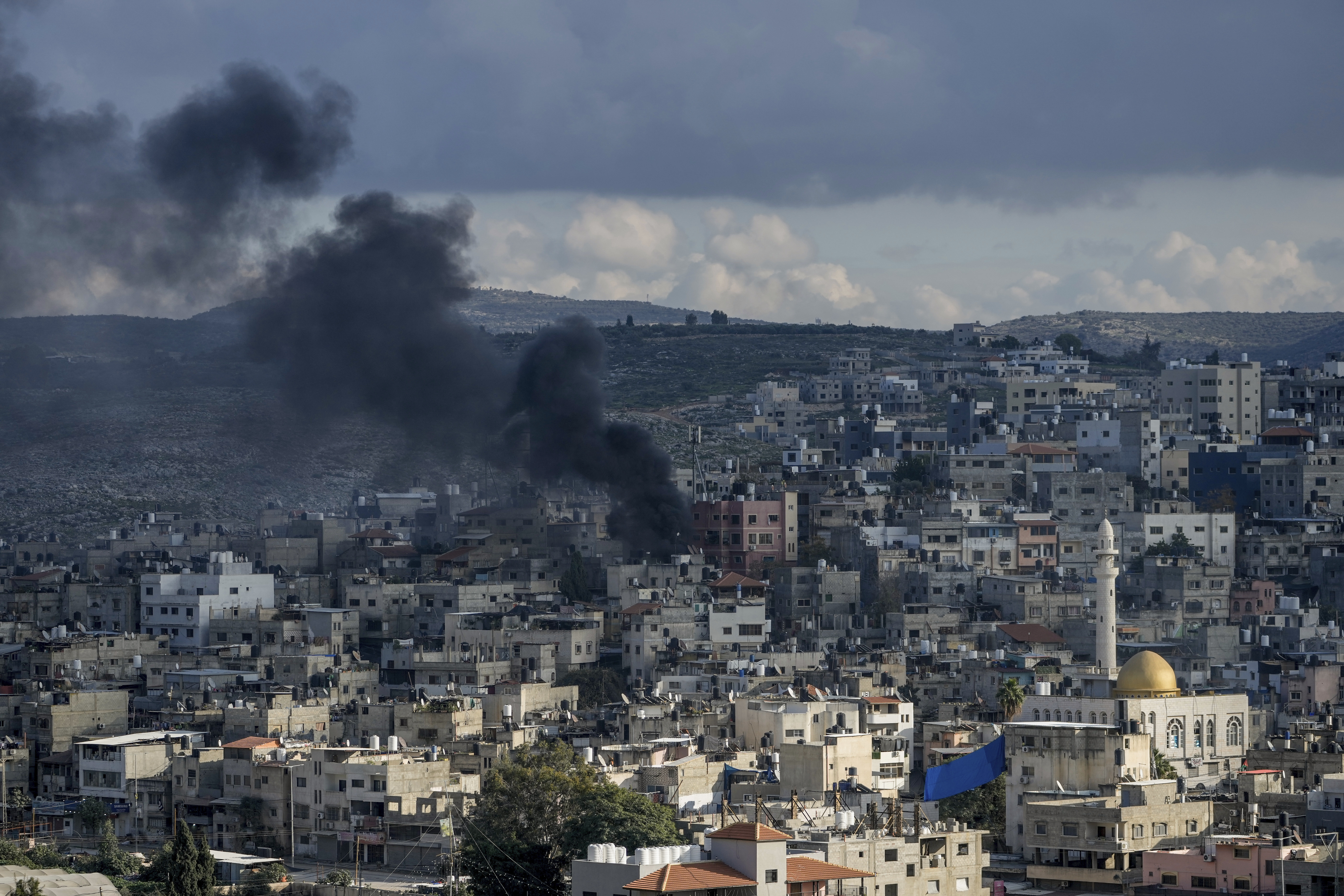 ![Smoke rises during an Israeli army raid in Nur Shams refugee camp in Tulkarem, West Bank, on Jan. 3, 2024. [Majdi Mohammed/AP].](/wp-content/uploads/2024/01/AP24003512049977-1706036050.jpg?resize=730%2C410&quality=80)