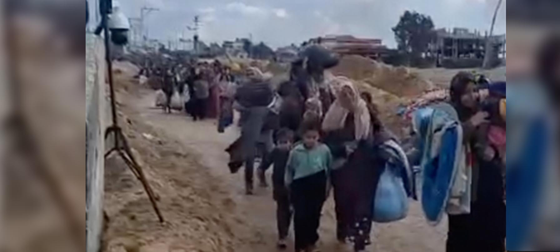 Israeli soldiers can be heard taunting Palestinian women and children as they passed by a checkpoint to monitor people being forcibly displaced in southern Gaza. The soldiers are also heard mocking leaders of Hamas over the loudspeaker.