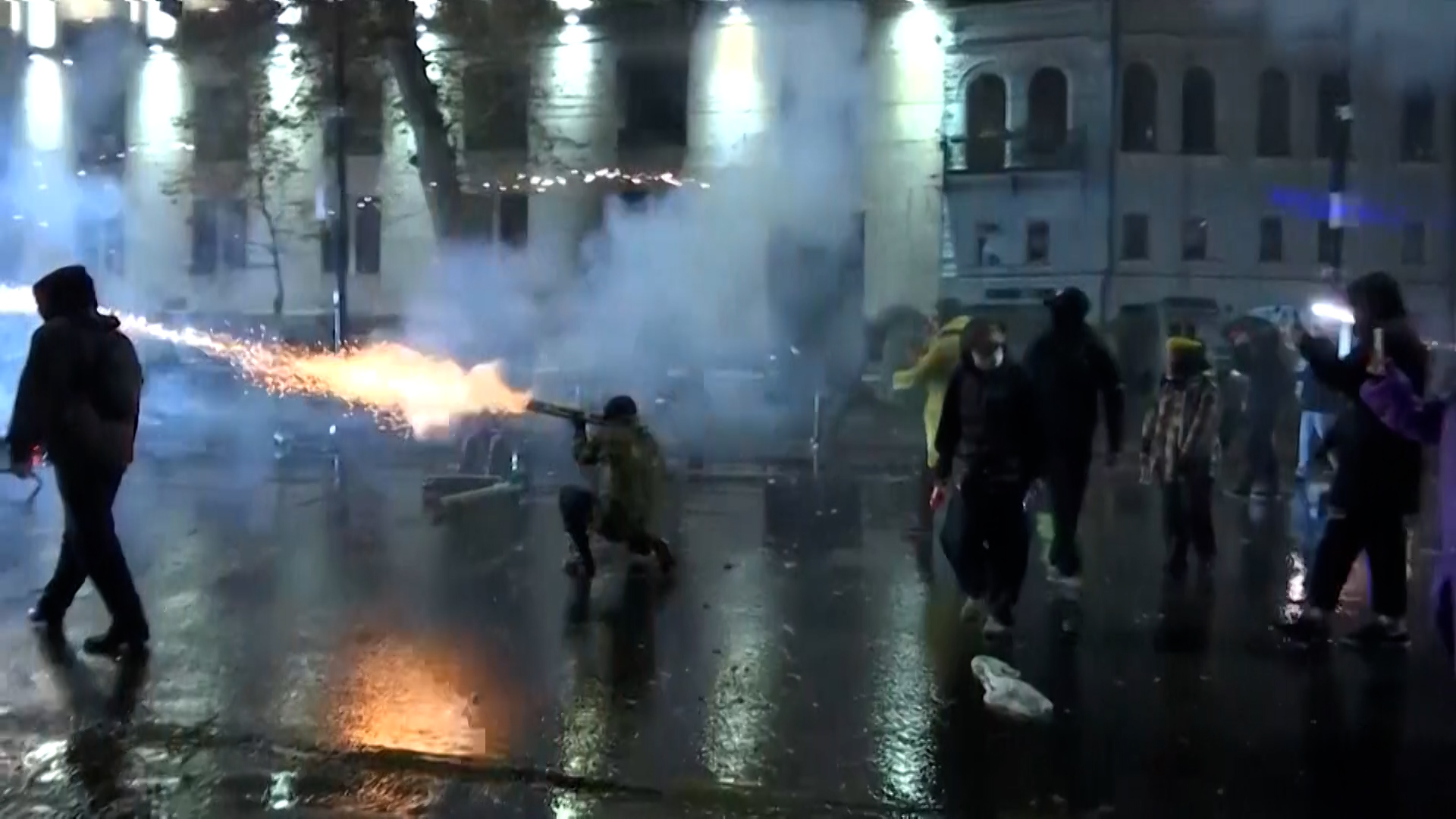Video: Protesters in Georgia shoot fireworks at riot police